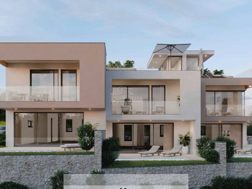 Vodice-**NUOVA COSTRUZIONE** in vendita case a schiera di lusso con piscine, terrazze sul tetto e vista mare. La casa di architettura moderna sarà costruita con materiali di qualità e sarà dotata secondo gli ultimi standard costruttivi. Tra le dotazioni si evidenziano: