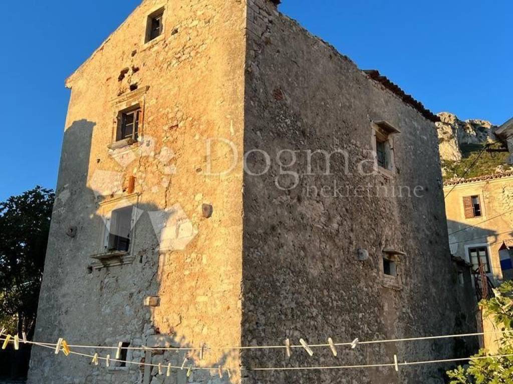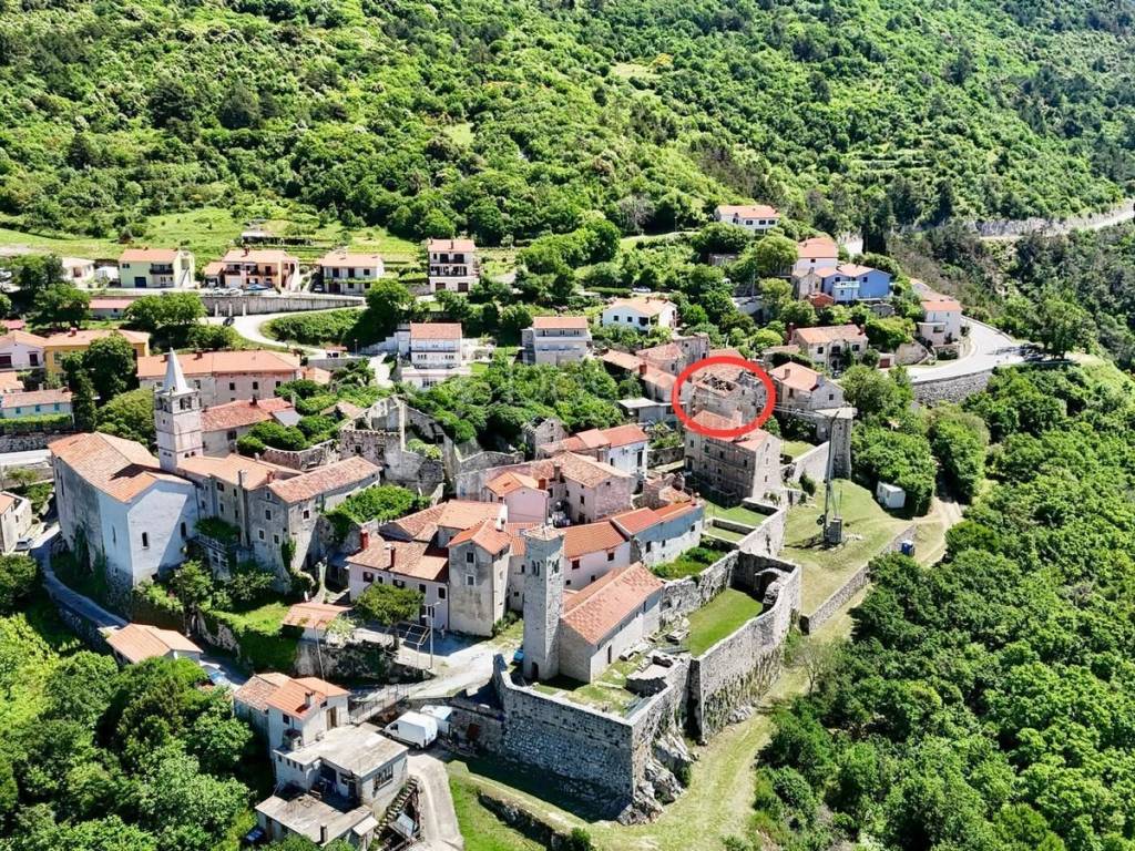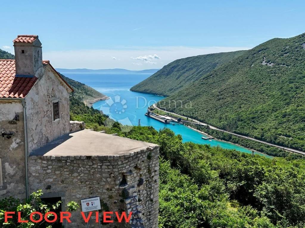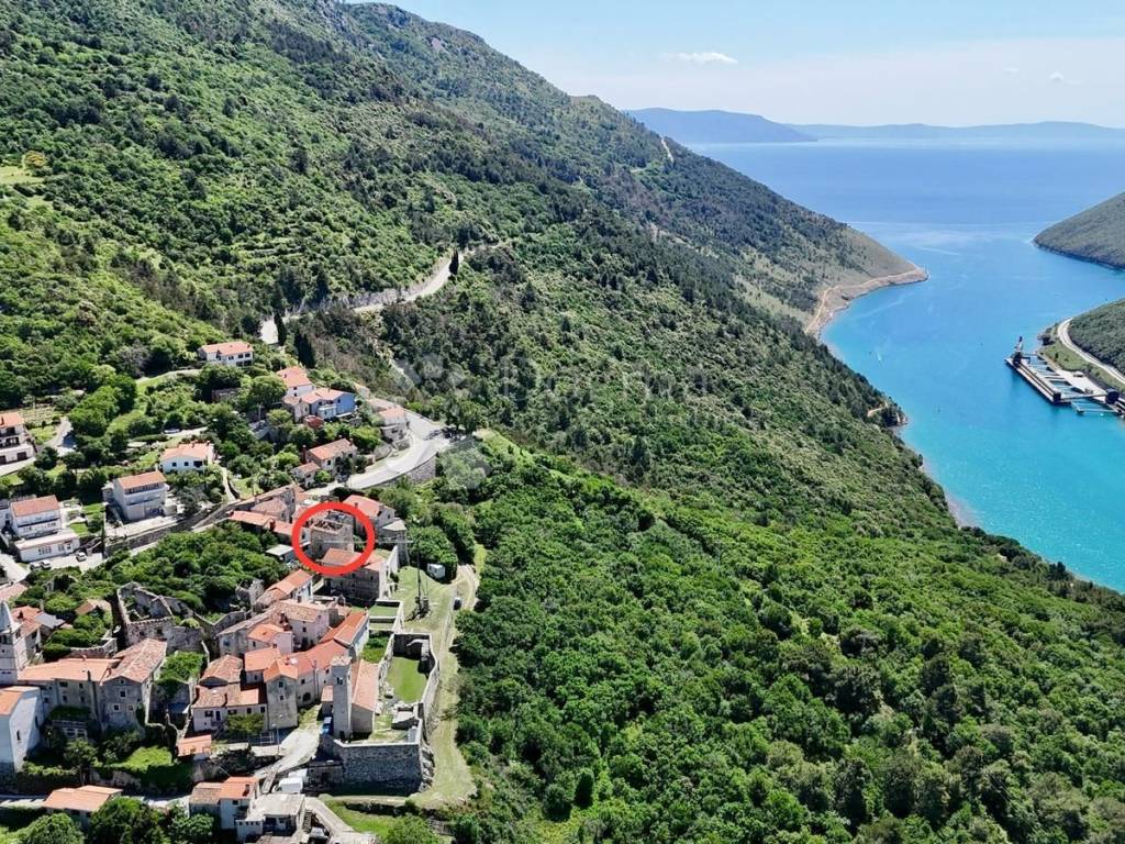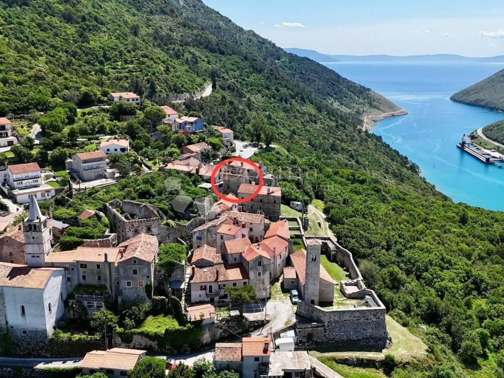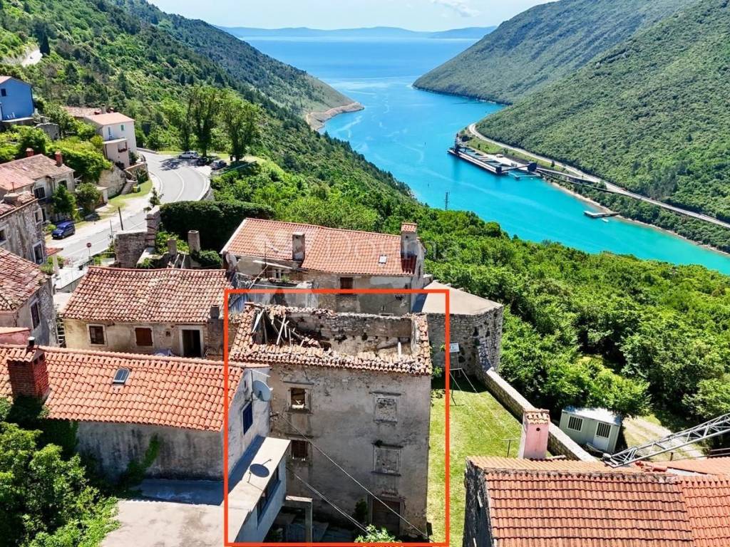 A stone detached house in the old town center of Plomin dominates the floor plan area of 56 square meters, located on a hill with an unobstructed view of the sea. It consists of the ground floor, first and second floors, resulting in a total usable area of 166 square meters.