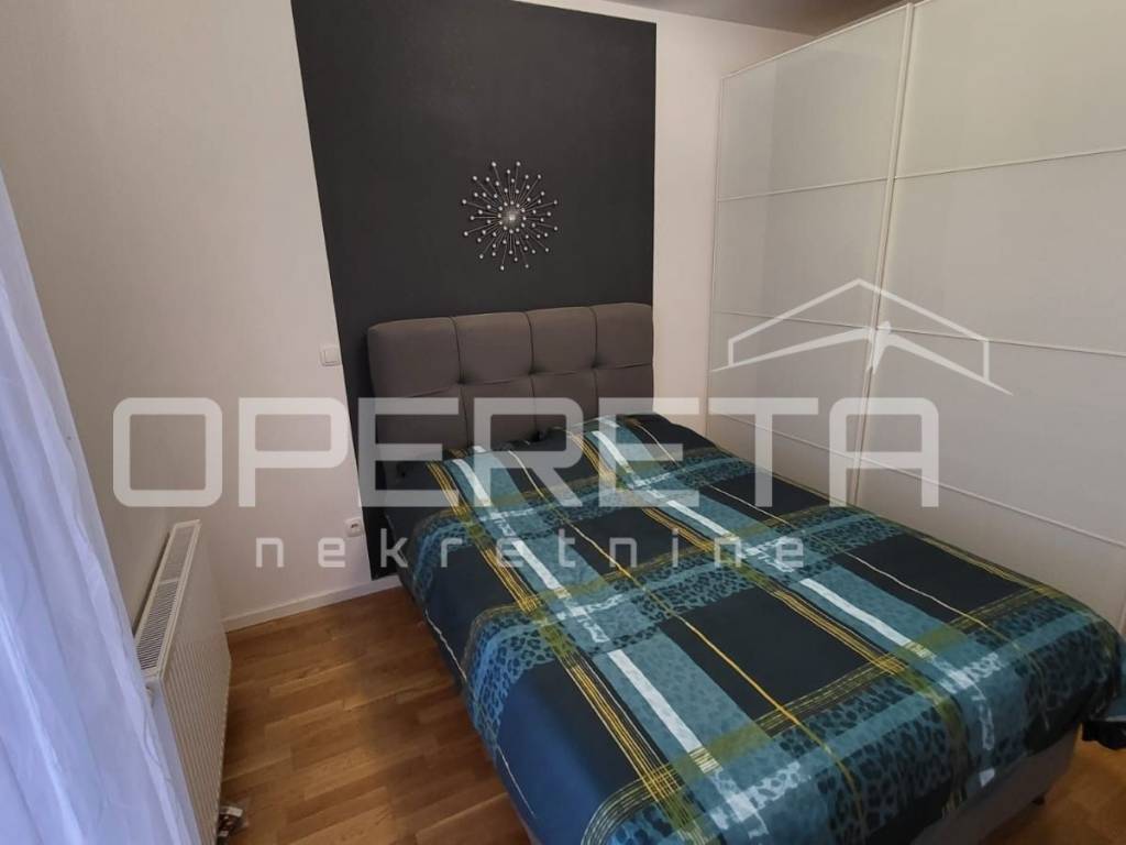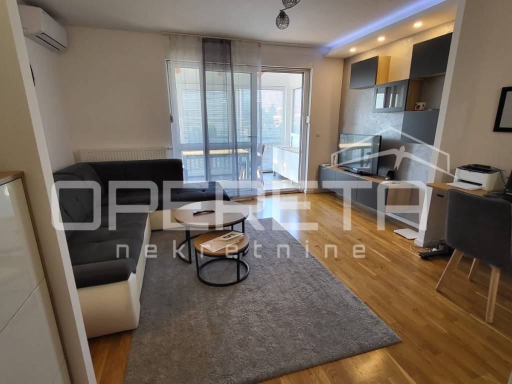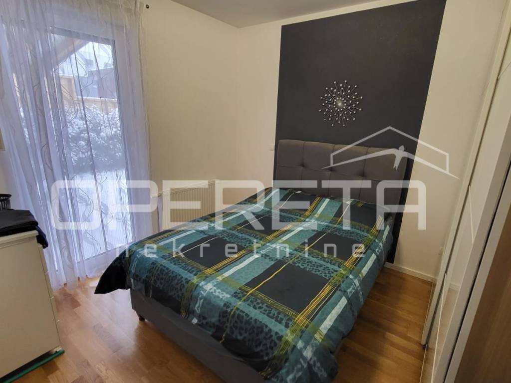kojem pripadaju sporedni dijelovi - balkon tlocrtne površine 2,97 m2 (zimski vrt trenutno), vrt obračunate površine 25,03 m2, te parkirališno mjestom površine 6,90 m2, ukupne netto korisne površine od 86,95 m2 (dodatno po elaboratu dva PM na korištenje koja nisu dio navedene kvadrature). Stan ima dvije spavaće sobe iz kojih se izlazi na terasu (natkrivena) i vrt, dnevni boravak u komunikaciji sa kuhinjom i izlazom na balkon/zimski vrt te kupaonicu sa wc-om. Nalazi se na mirnoj lokaciji u sklopu kompleksa kojeg čine preko 10 zgrada novije gradnje istog investitora. Prodaje se kompletno namješten. U odličnom je i uščuvanom stanju. Preporuka agencije!