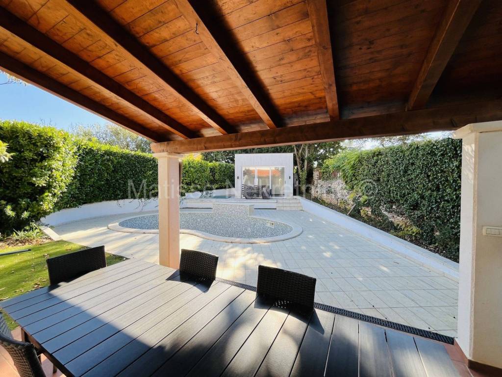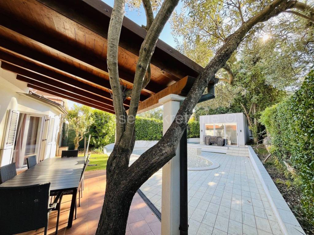Nel cortile si trovano una piscina e una dependance. C'�� molto verde e un grande albero di ulivo. Il cortile �� concepito per offrire totale privacy.