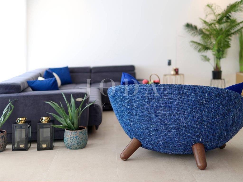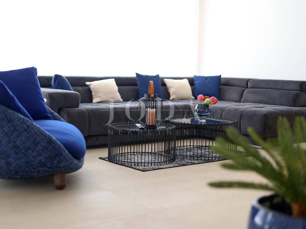 The house is fully furnished with modern and designer furniture. Shucco aluminum three-layer joinery, 7.5cm thick profiles, Mitsubishi inverter air conditioners in all rooms, underfloor heating, top-quality first-class ceramics and parquet, Moooi chandeliers, Intralight lighting.