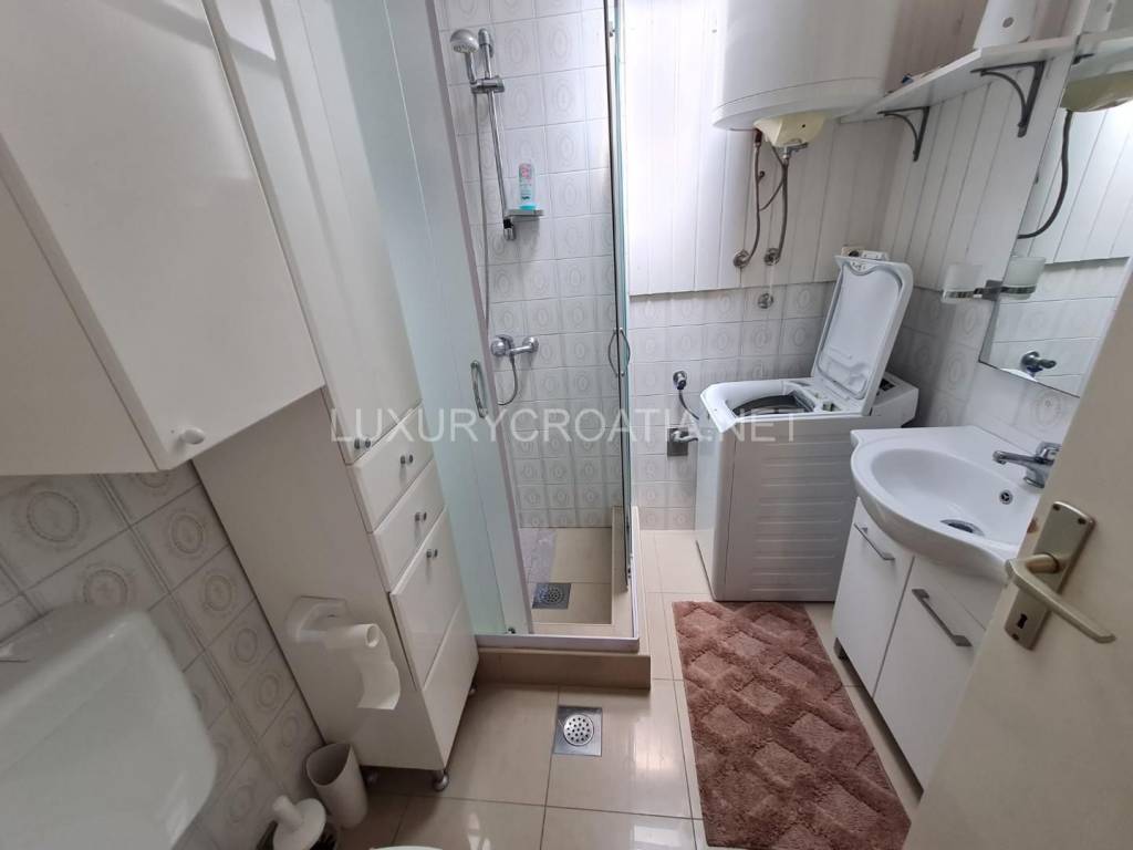 House is only 70 meters from the sea! The nearest beach is only about 200 meters from the house, while the old town of Korcula is about 400 meters away on foot. It takes about 5 minutes by car to reach a large newly built supermarket, next to which there is also a gas station and a car wash. The house offers a beautiful view of the natural beauties of the Korcula Channel and the Peljesac peninsula, but also of the cultural beauties of the walled old town of Korcula. The house has as one two-bedroom apartment and one one-bedroom apartment, so total 3 bedrooms and 2 bathrooms in this semi-detached house with garage and small backside garden. Around the house there are two terraces, one of which is covered and has an area of 20m2, while the other is 30m2. The house also has a small garden perfect for those who like to grow their own vegetables. The house is air-conditioned with 4 air conditioners and has 3 large pantries. The house is fully furnished, but the furniture is not included in the price.