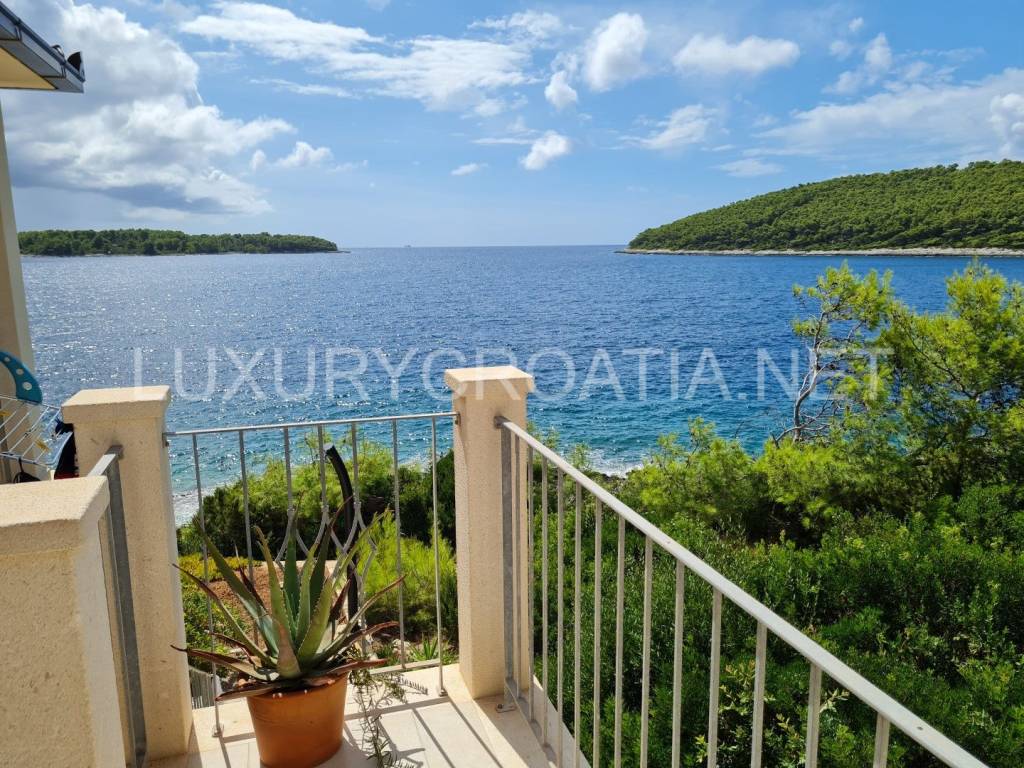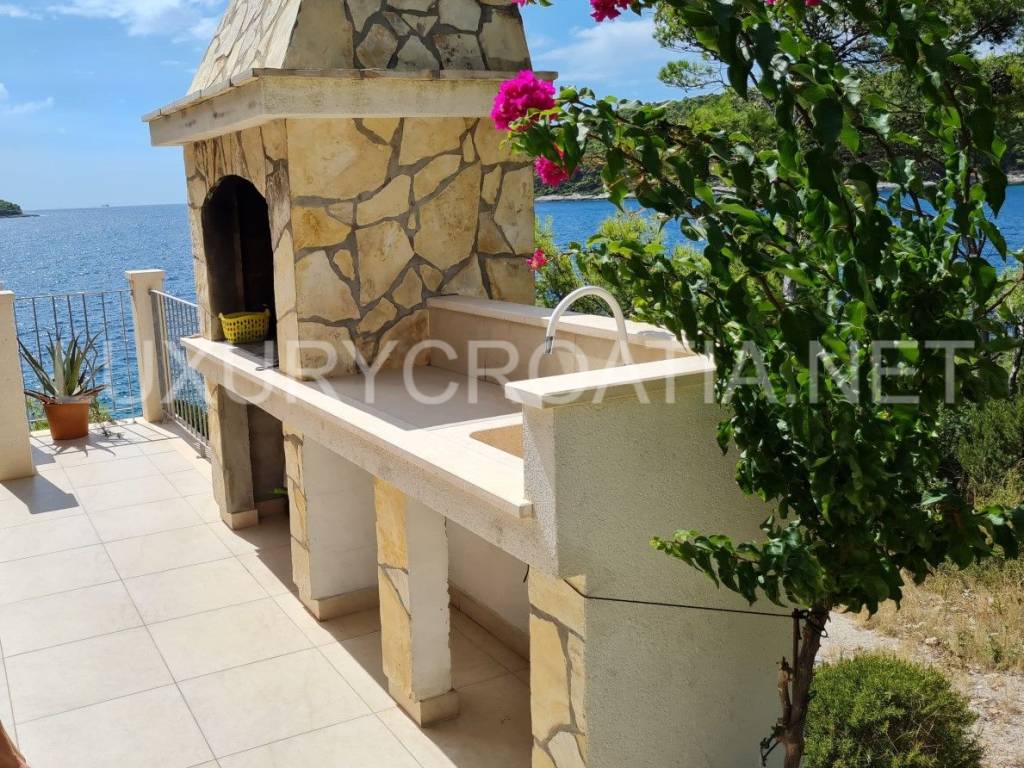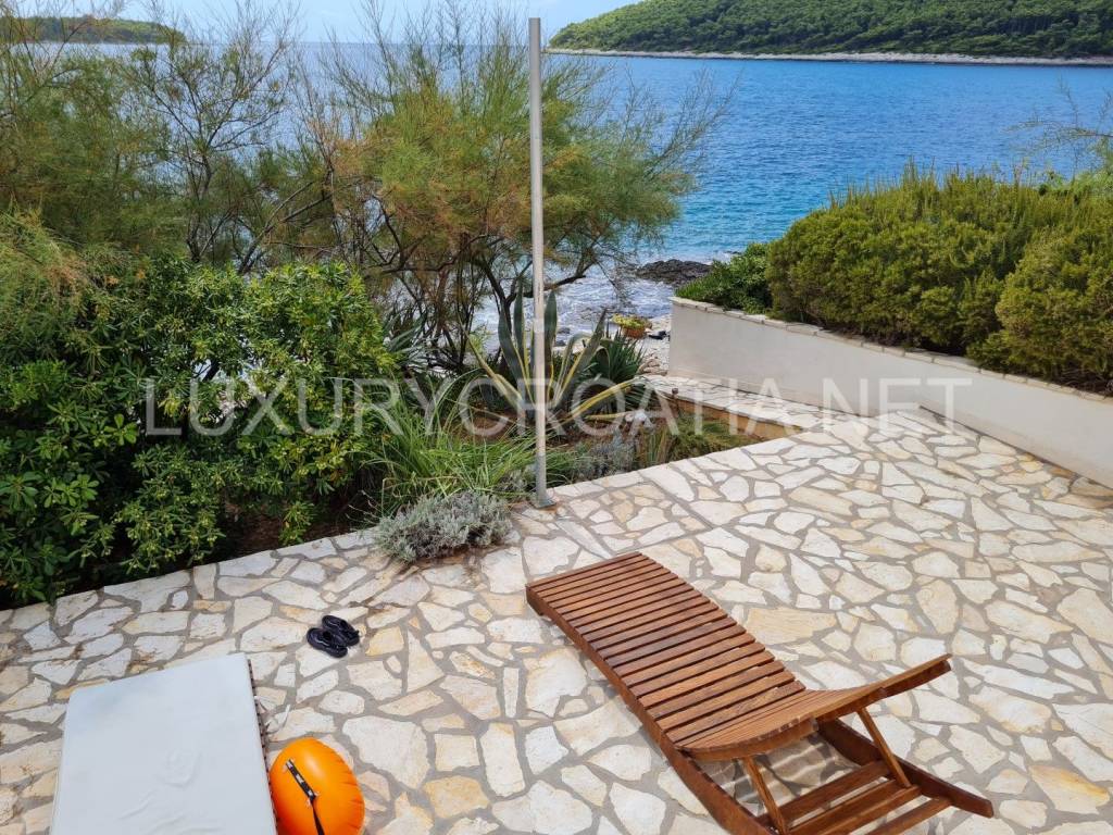 Croatia Korcula island frontline villa for sale directly on the beach is a perfect getaway for those who like the untouched beauty and want to enjoy in peace. There is nothing except the sea, pinewood, and crickets.