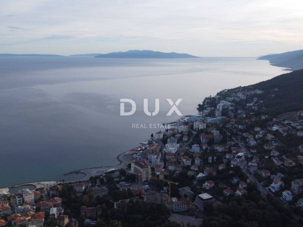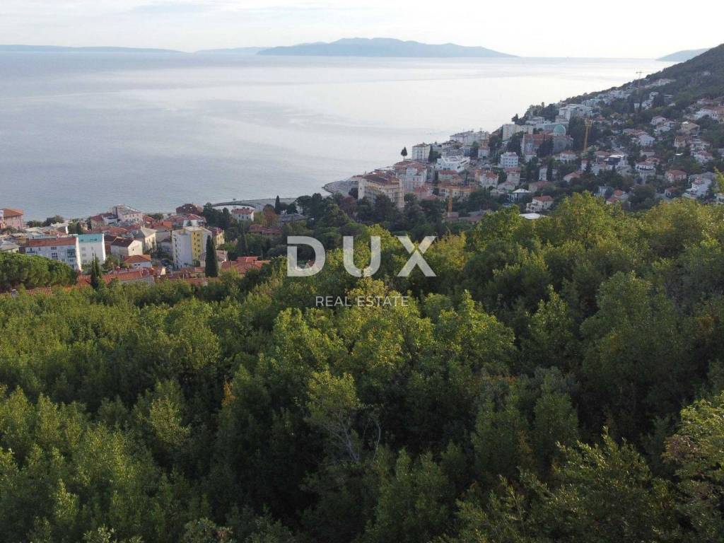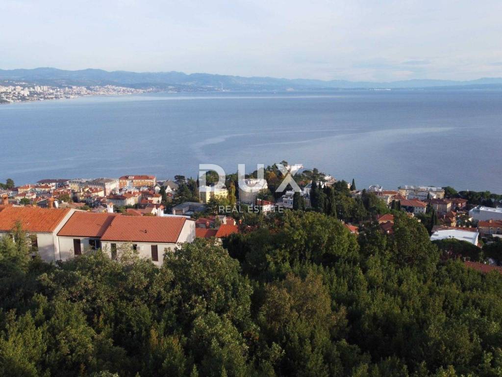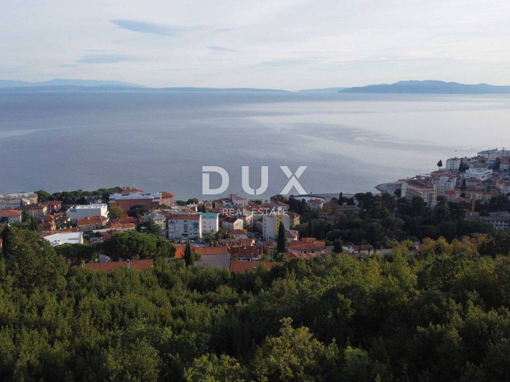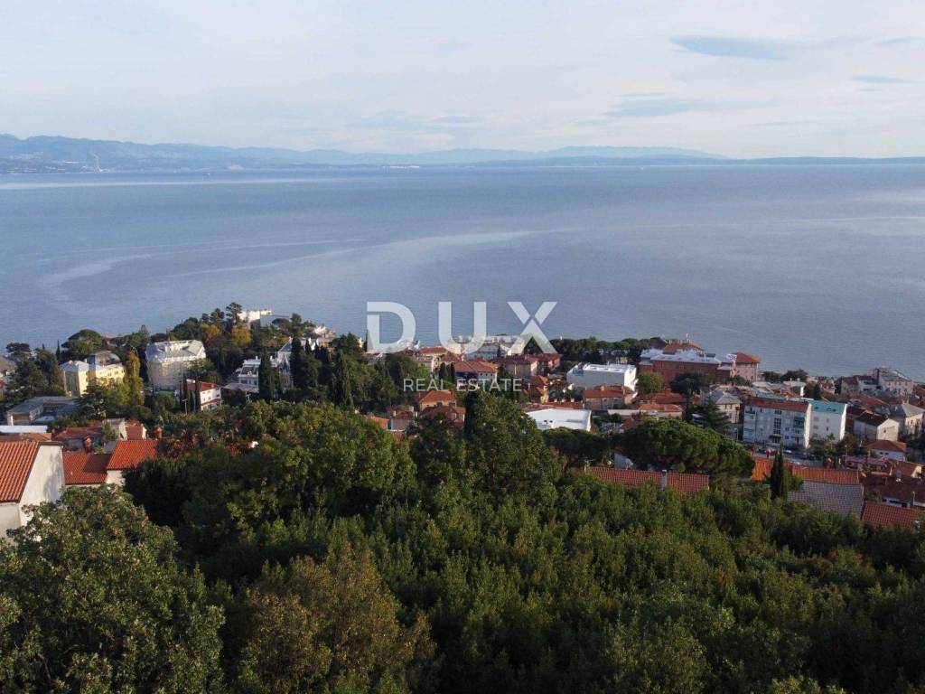 OPATIJA, CENTAR - građevinsko zemljište 950m2 s građ. dozvolom i panoramskim pogledom na more za obiteljsku kuću, villu, stambenu zgradu, stanove, apartmane, kuću za iznajmljivanje; odmor s bazenom