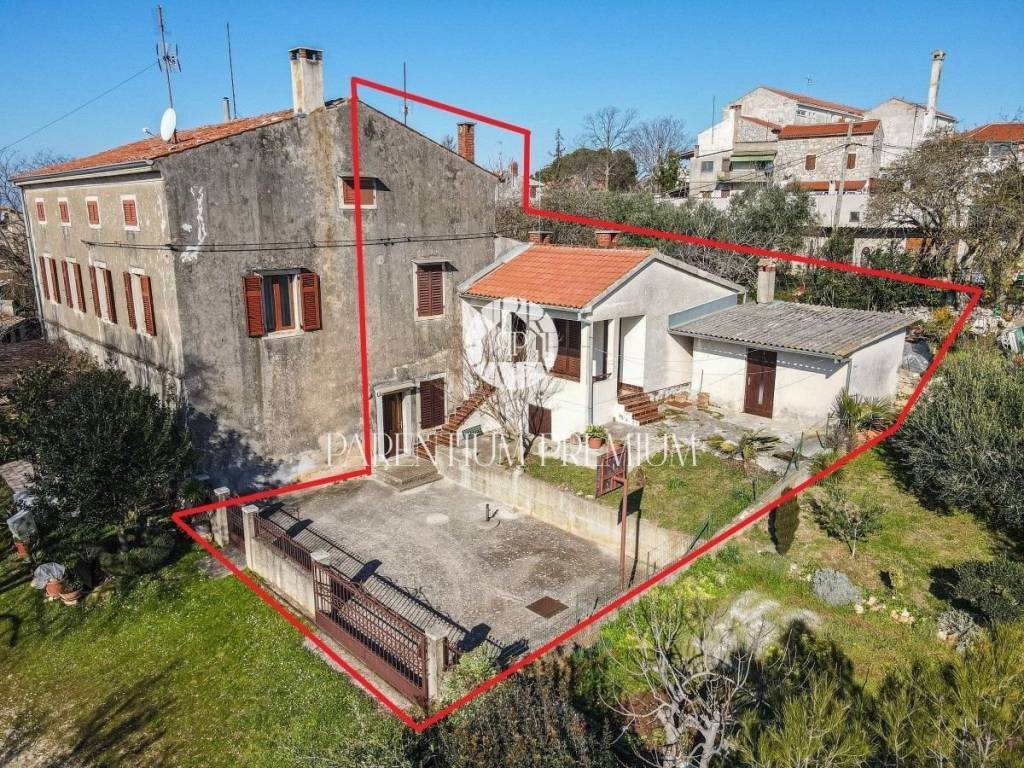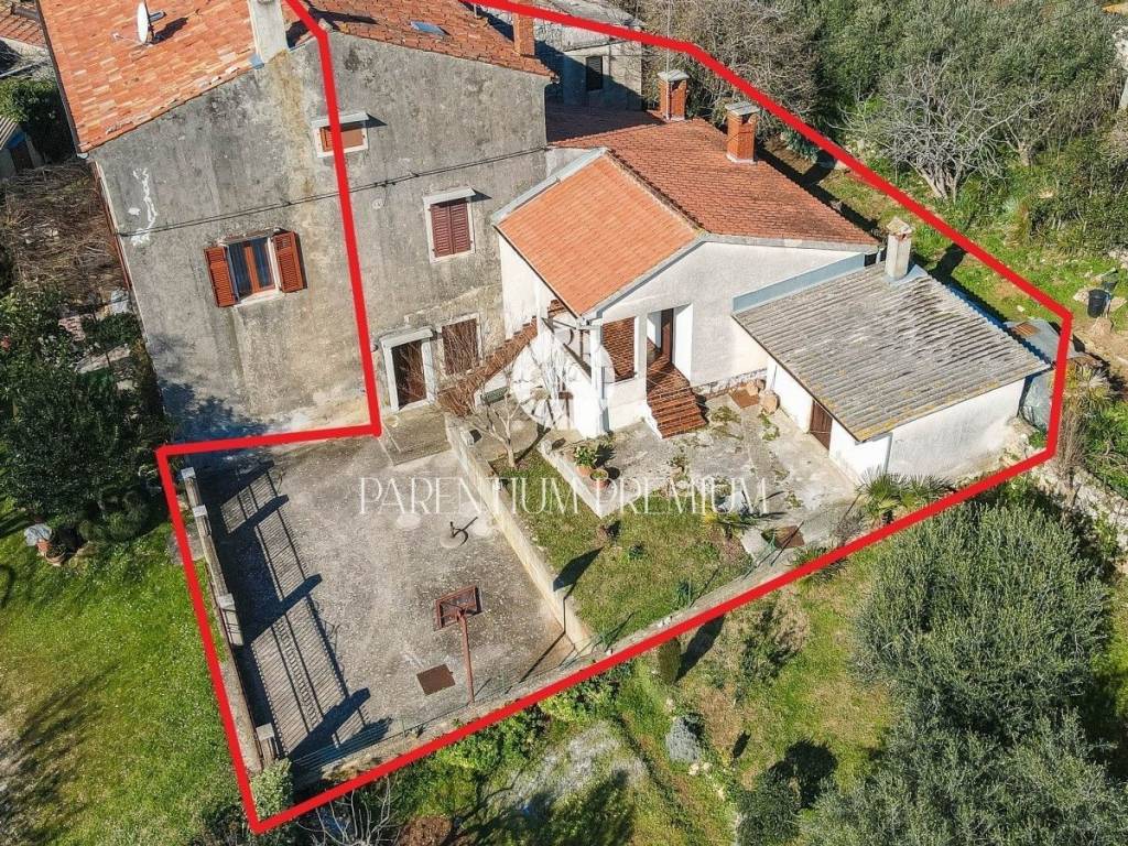 Istria, Poreč surroundingsA terraced house with two residential units and its own yard is for sale.The first residential unit is about 120m2 and spreads over 3 floors. The ground floor consists of a living room with a dining area and a kitchen, on the mezzanine there is a spacious bathroom, on the first floor there is a bedroom, and the second floor is a high attic that can be converted into another large or 2 smaller bedrooms.Next to the house there is a second residential unit of about 30m2 which serves as an apartment, consisting of a kitchen, 2 bedrooms and a bathroom.There is also a storage room/storage room in the yard.The house has 4 parking spaces.The house is located 4km from the first beaches and 6km from Poreč.The owners are also selling agricultural land of 14800m2, optimal for a vineyard, olive grove or other agricultural purposes, located near the house, at a price of €10/m2.