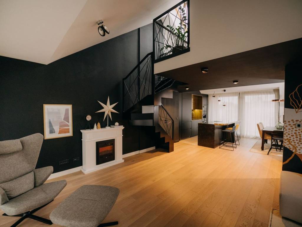 Posebna pozornost posvećena je uređenju interijera koji je pomno projektiran i opremljen bez kompromisa. Stan je u potpunosti namješten vrhunskim dizajnerskim namještajem (Prostoria, Natuzzi, kuhinja Knapić, Stolarija Breza, rasvjeta Prgin, Villeroy&Boch...) te opremljen uređajima najvišeg ranga (premium brendovi poput Miele). Ugradbeni ormari po mjeri, profinjena stolarija, skriveni štokovi vrata, pažljivo dizajnirana rasvjeta, visokokvalitetni kupaonski elementi i detalji od biranih materijala tvore interijer koji odiše suvremenim luksuzom i bezvremenskom estetikom.