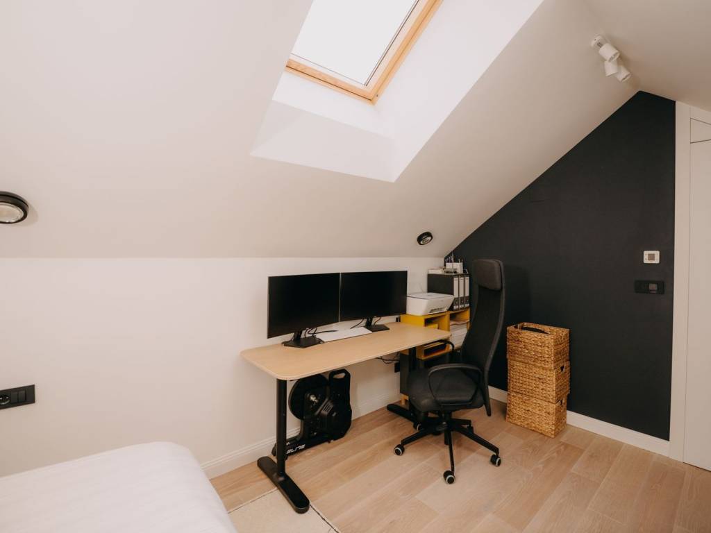 Stan i zgrada opremljeni su sustavima koji jamče maksimalnu udobnost i sigurnost. Ulaz u zgradu moguć je i otiskom prsta, a zajednički prostori su pod videonadzorom. Velux krovni prozori i rolete upravljaju se daljinski ili putem aplikacije, uz automatsko zatvaranje u slučaju padalina. Posebnu vrijednost stanu daje napredni sustav stropnog grijanja i hlađenja s dizalicama topline i individualnom regulacijom temperature u svakom prostoru. Ovaj sustav radi izuzetno tiho i minimizira prisutnost alergena, uz značajno nižu potrošnju energije. Prostor ostaje miran, ugodan i zdravstveno optimalan – idealan za odmor, rad i svakodnevni život.