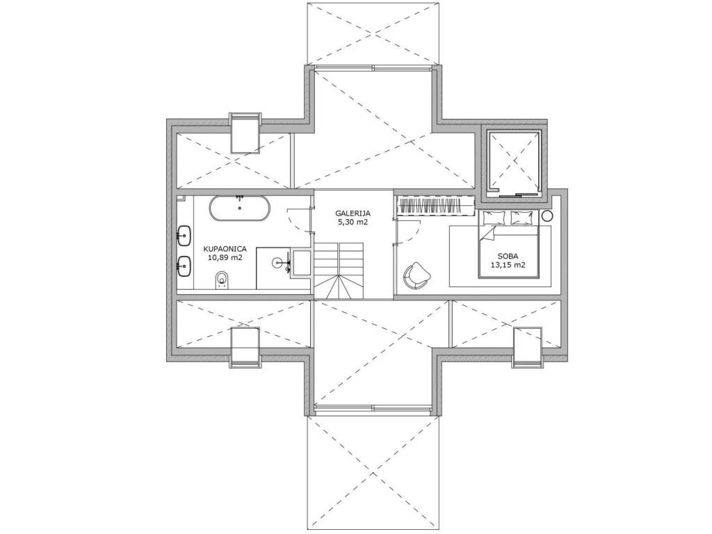 - natkriveni balkon 2 - 5,34m2 (7,12x0,75)