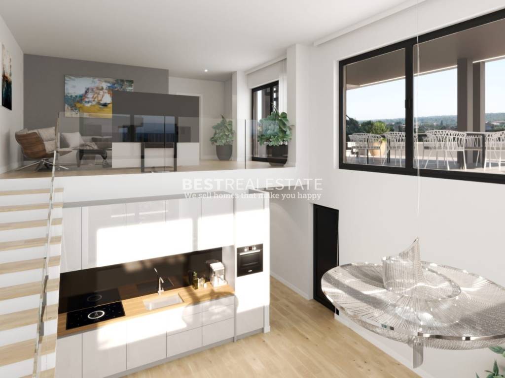 SA4 (197,31 m², dvoetažni penthouse) – kuhinja, blagovaonica, dnevni boravak, dvije kupaonice, WC, tri spavaće sobe, galerija, spremište (podrum), tri natkrivene, jedna nenatkrivena i krovna terasa od 123,49 m². Dva parkirna mjesta.
