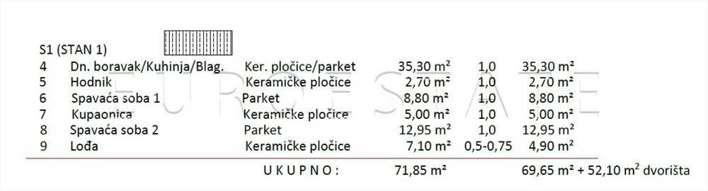 PRODAJE SE trosoban stan sa privatnim vrtom oznake S1 u prizemlju stambene zgrade ukupne površine 123,95 m2 i neto korisne površine 74,86 m2.