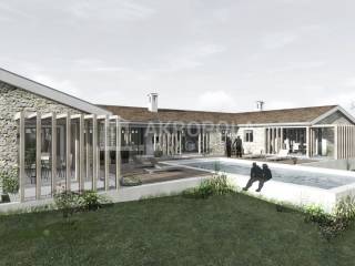 Pomoćne zgrade čine_ spremište za masline i vino 200 m2,spremište za alate i strojeve 100 m2, spremište za smokve 100 m2, plastenik za povrće i voće 128 m2,staja za koze 200 m2 spremište i prerada povrća 128 m2, Spremište je zamišljeno ka maslinjak 16.600 m2, smokvik 8800ˇm2 te travnjak, povrtnjak i cvijetnjak 7500 m2,
