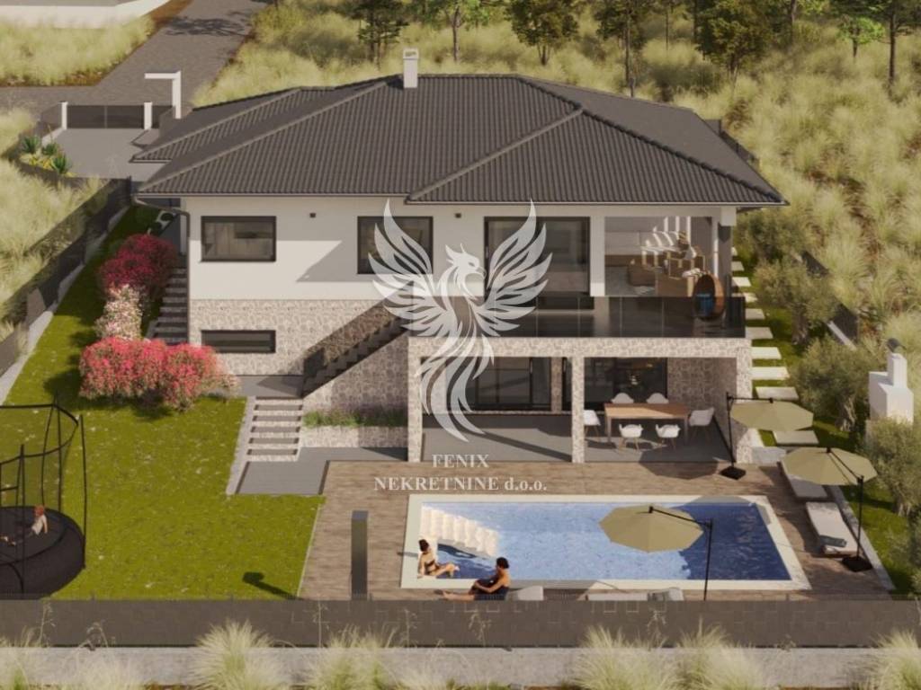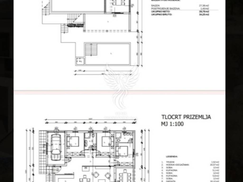 Prodaje se izvrsno građevinsko zemljište u mirnom mjestu Banjevci. Zemljište ima gotov kompletni projektom (glavni projekt arhitekture, građevinski projekt, projekt vodovoda i odvodnje, projekt toplinske zaštite i uštede energije, glavni elektrotehnički projekt) i pravomoćnom građevinskom dozvolom. Plaćeni su vodni i komunalni doprinosi. Projektom je kuća je zamišljena kao urbana vila sa bazenom koja se sastoji od podruma u kojem se nalazi konoba, vešeraj, WC, teretana i sauna i prizemlja gdje se nalazi boravak, blagovaonica, kuhinja, 3 spavaće sobe,2 kupaonice, hodnik i garaža za jedan automobil. Na samom ulazu u dvorište su tri parkirna mjesta. U podnožju zemljišta je zamišljen bazen i roštilj. Kuća je idealna za svakodnevni život, ali i za bavljenje turističkim najmom.