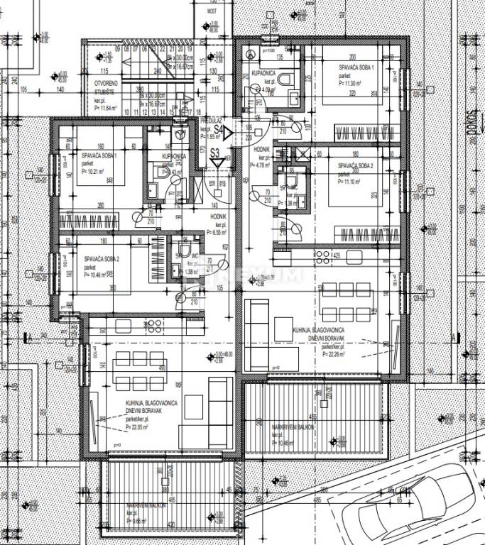 Apartment S3 consists of: