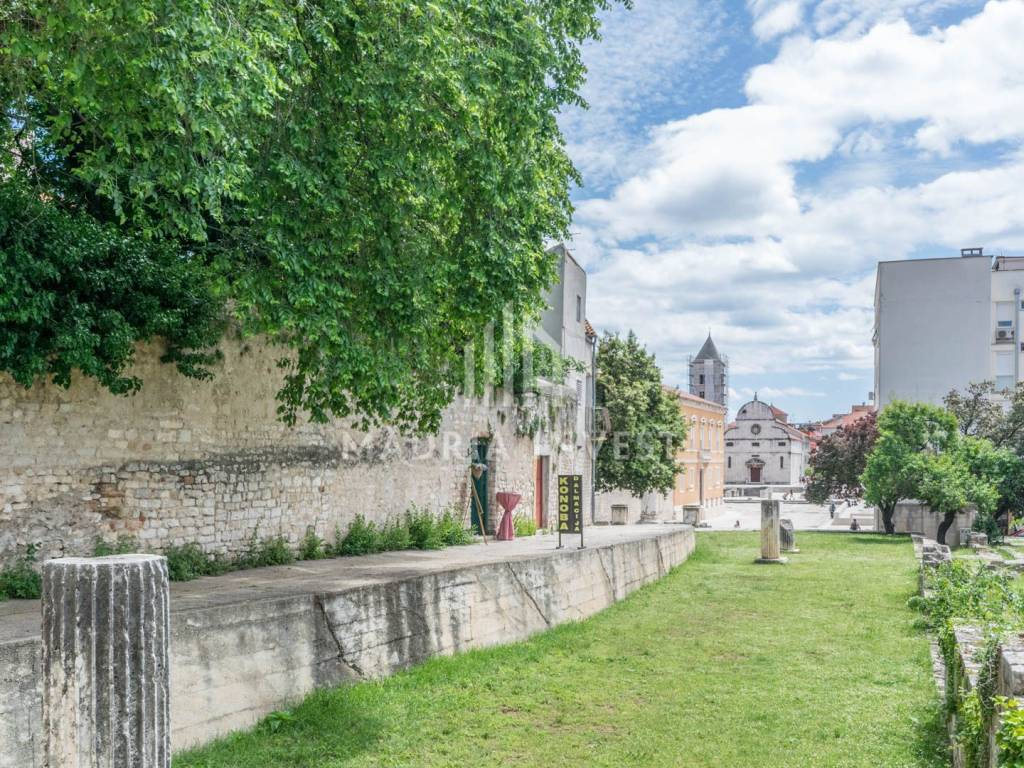 House in a unique location in the historic center of the city of Zadar, on the Zadar Forum and near Sv. Donut. The house is located on a large plot, has a garden and a nice arrangement of rooms, which allows the house to be remodeled for various purposes, such as a mini hotel, restaurant and more. A complete renovation is needed. A rarity on the market.