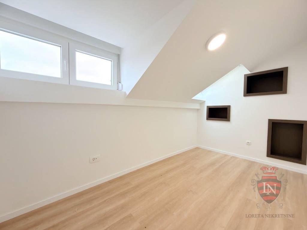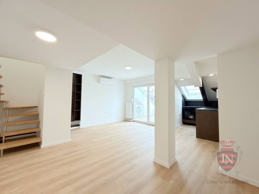Stan se nalazi u potkrovlju, u potpunosti je preuređen te nudi 75 m² funkcionalnog i reprezentativnog prostora, idealnog za uredske i poslovne djelatnosti.