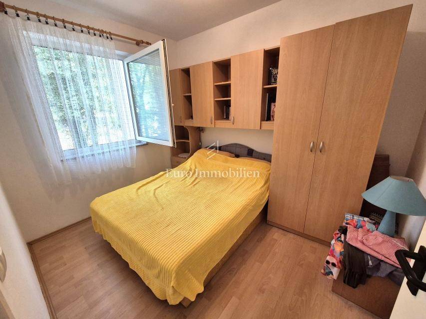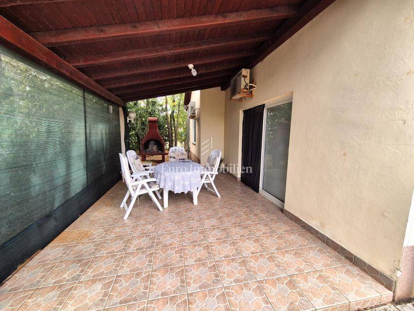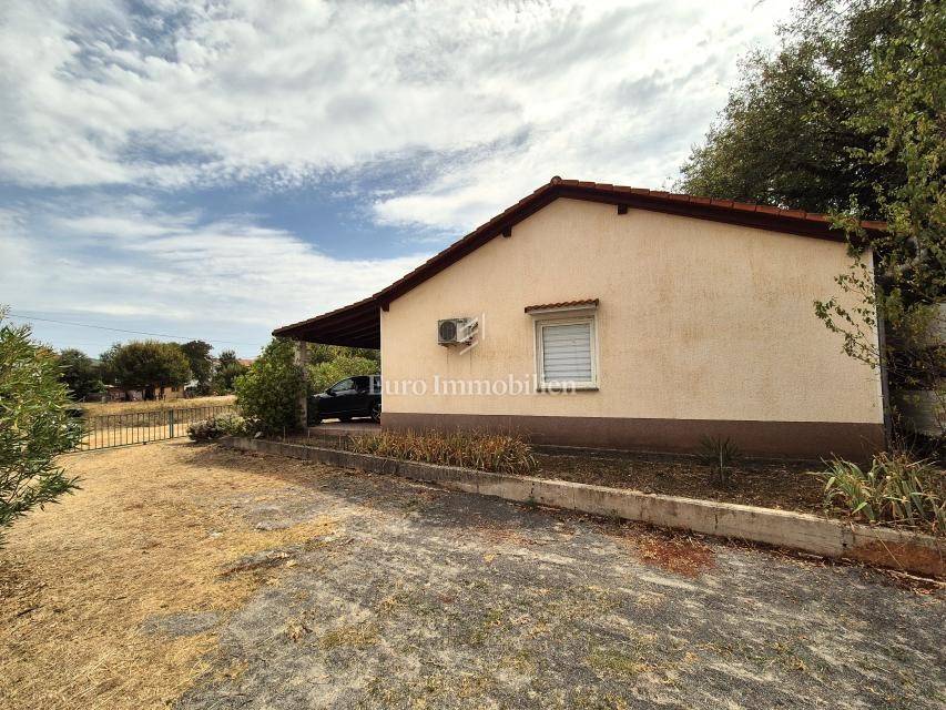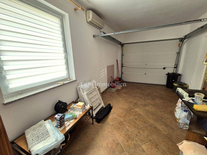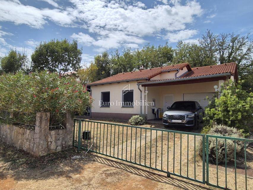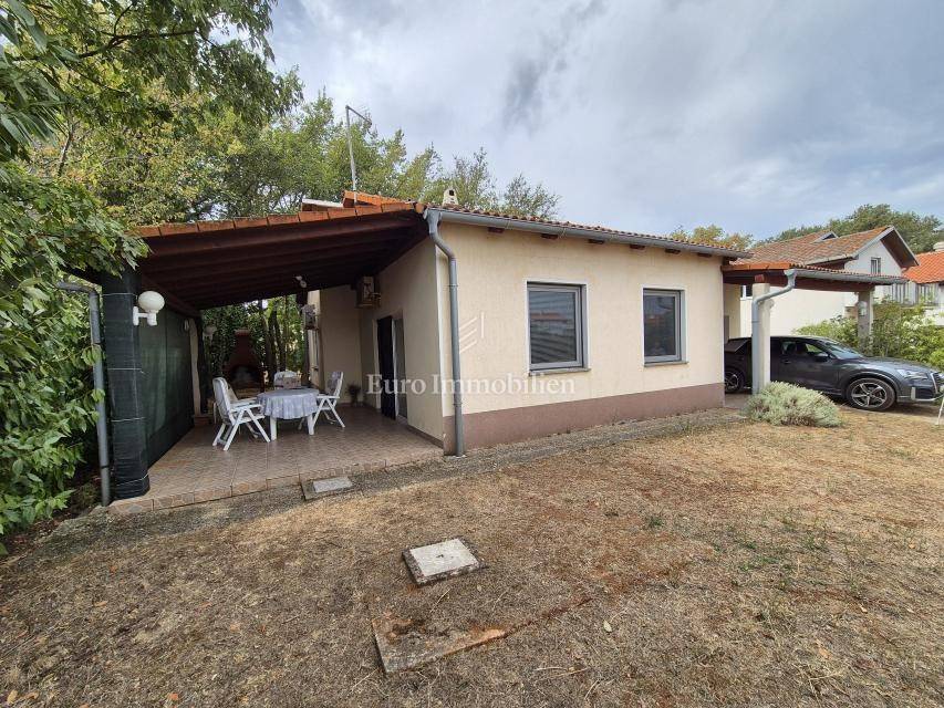 Dintorni di Malinska, casa ad un piano con garage in una posizione tranquilla. Vendesi casa indipendente su un piano, superficie abitabile 90 m2, brutto 106 m2, costruita su un terreno di 430 m2. Si compone di due camere da letto, cucina con sala da pranzo e soggiorno, bagno, garage con lavanderia e WC. La casa è completamente arredata, climatizzata con tre condizionatori, ed è presente anche un caminetto per il riscaldamento. Sul giardino di 290 mq c'è spazio per realizzare una piscina. Il parcheggio può ospitare da due a tre veicoli e dispone anche di un posto auto in garage. La posizione è tranquilla nei dintorni delle case familiari. La distanza dal centro e dal mare è di circa 2000 metri.