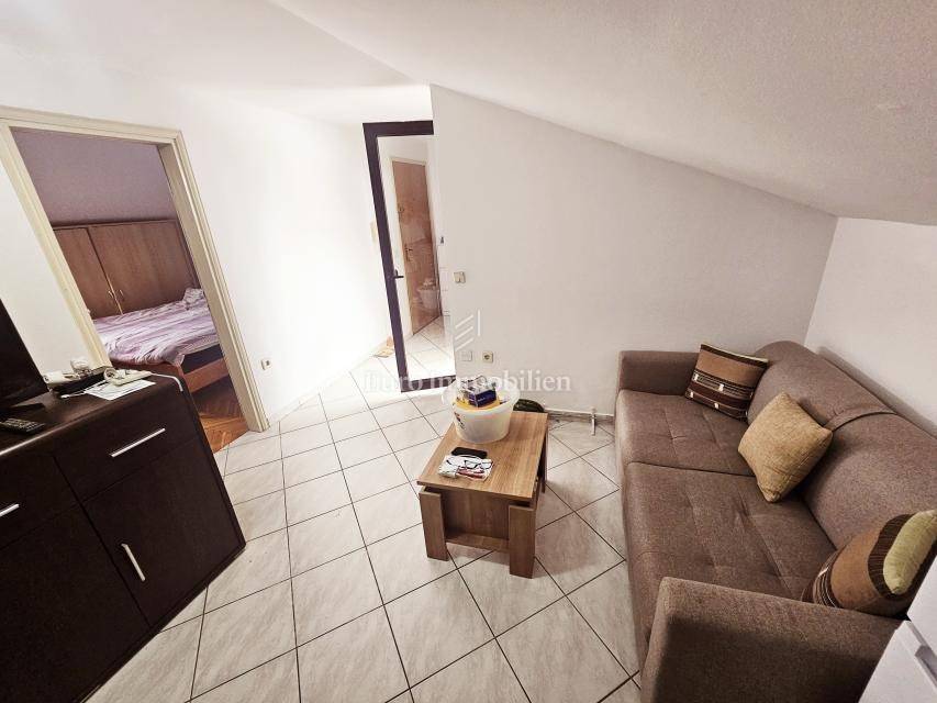 Appartamento in vendita di 55,83 m² nella mansarda di un edificio residenziale a Malinska, in ottima posizione vicino al mare. L'appartamento è composto da una camera da letto, soggiorno con cucina e zona pranzo, disimpegno, bagno e loggia.