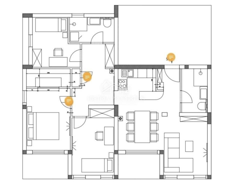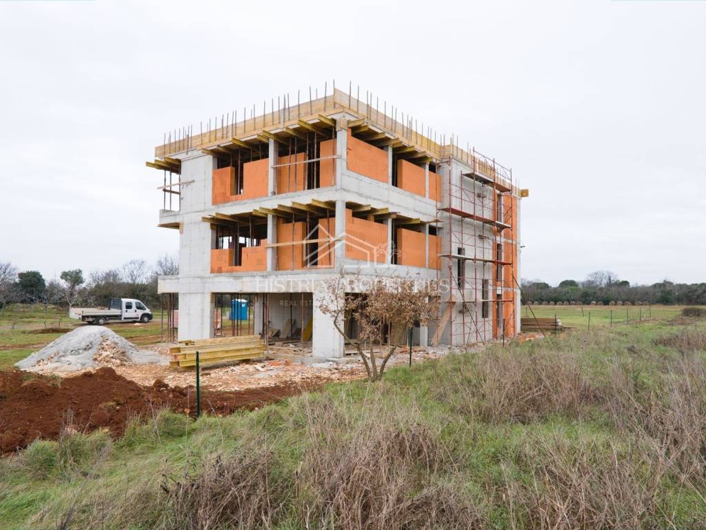 Questo spazioso appartamento in un nuovo edificio vicino a Pola è ideale per le esigenze di una famiglia numerosa, situato non lontano dal centro città e da tutti i servizi come scuole, asili, negozi, medici e altri beni di prima necessità.