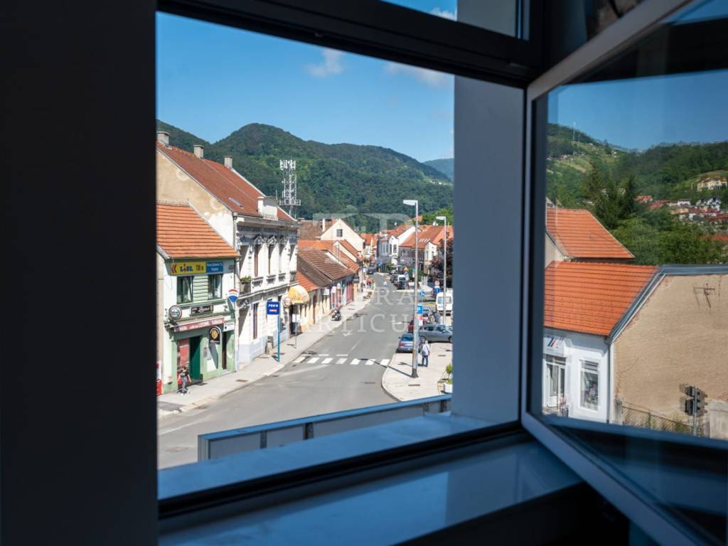 KRAPINA, strogi centar Prodajemo poslovni prostor sa sanitarnim čvorom na prvom katu poslovne zgrade u kojoj se nalazi Zagrebačka banka. Površina mu je 53,43 m² + toalet 8,75 m² + parkirno mjesto 13,5 m² (u naravi parking za dva automobila), ukupne korisne površine 75,68 m², odnosno obračunske površine cca 67m². Dostupan je odmah. Na kupnju ove nekretnine ne plaća se 3% poreza na promet nekretnina, obzirom da je u sustavu PDV-a.