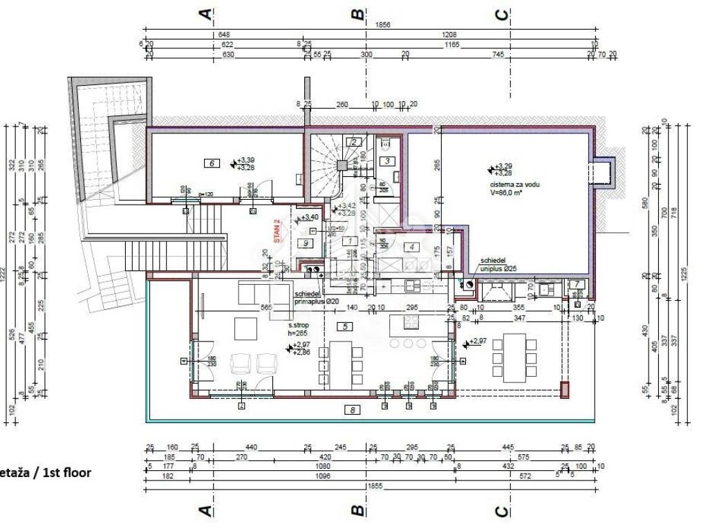 Ishodovana je građevinska dozvola za gradnju višeetažnog objekta (S2+P) s dvije stambene jedinice, koji je koncipiran na način da je parking u prizemlju, a dvije etaže se nalaze ispod razine pristupne ceste, što pruža dodatni luksuz ovoj gradnji. Građevinskom dozvolom predviđena je gradnja bazena površine 21 m ( 7m x 3m-DxŠ), kao i cisterne za vodu zapremnine 86 m3.