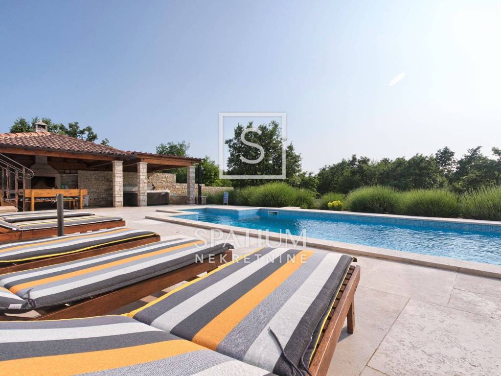ŠTOKOVCI offriamo una bellissima villa con piscina, superficie abitabile di 294 m2 su un terreno recintato di 2000 m2. La villa dispone di 4 camere da letto con bagno al piano terra e al primo piano. Il soggiorno e la sala da pranzo open space hanno un'uscita sulla terrazza, dalla quale si scende al cortile con piscina riscaldata e camino coperto con zona salotto. Il seminterrato della casa funge da zona per attività sportive. L'intera struttura è dotata di sistema di allarme oltre che di videosorveglianza dall'esterno. Nel giardino è presente un campo sportivo (16x8) per calcetto, basket o pallavolo, ed un campo da minigolf a 6 buche. Per i più piccoli è disponibile un parco giochi multifunzionale con altalene, scivolo e struttura per arrampicarsi. Dispone di un parcheggio coperto per due auto e di un ulteriore parcheggio per altri due veicoli, la superficie totale del parcheggio è di circa 100 mq. Una proprietà molto bella che offre la possibilità di una locazione turistica per gli amanti della tranquillità e delle vacanze attive. Štokovci è un villaggio nel Comune di Svetvinčenat, nella Regione istriana. Il comune di Svetvinčenat si trova nella parte meridionale dell'Istria centrale. Svetvinčenat ravviva l'offerta turistica attraverso vari eventi organizzati in attraenti luoghi storici, che promuovono la tradizione, la cultura, i costumi e la gastronomia dell'Istria. Sulla piazza principale si svolge il tradizionale Festival della danza e del teatro non verbale, la Festa del formaggio, la Festa medievale, il Mrkat delle opere istriane, ovvero la mostra degli antichi mestieri istriani e dei souvenir, seguito dagli spettacoli di Istra inspirit, la selezione della migliore capra , Festa del vino giovane... A Svetvinčent il gruppo artistico "Šikuti machine" organizza frequenti mostre, concerti, rappresentazioni teatrali e spettacoli. Per altre informazioni contattateci con fiducia. Nives Švast Assistente alla mediazione +385 95 859 0550 nives@spatium.hr Spatium nekretnine +385 51 272 903 info@spatium.hr