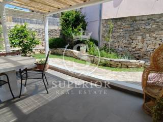 Al piano terra (20 m²) troviamo una cucina attrezzata, soggiorno-pranzo, wc e uscita su terrazza coperta.