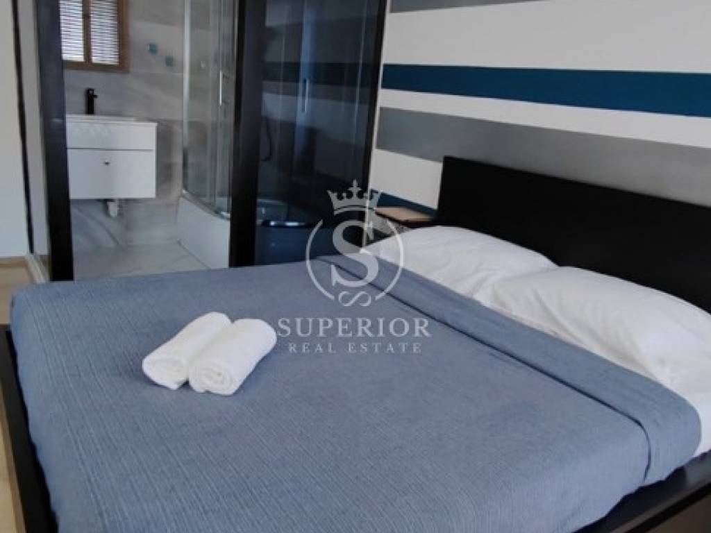 Al piano superiore si trova una camera matrimoniale spaziosa e un bagno moderno con luce naturale.