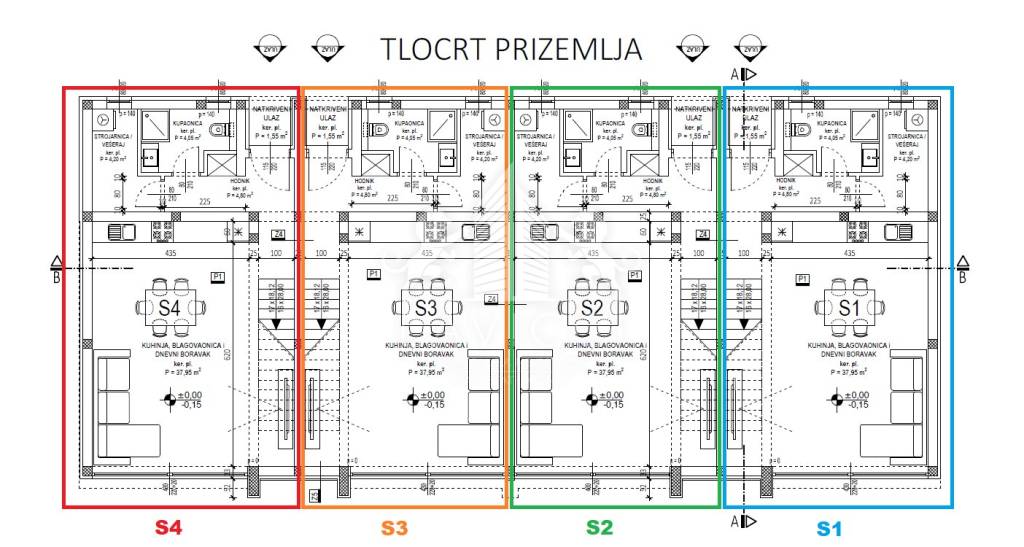 In the town of Privlaka, just 450 meters from the sea, a two-story terraced house is for sale within a modern residential complex consisting of four residential units. It is a new high-standard building, located in a quiet and functional environment ideal for a family, vacation or tourist investment.