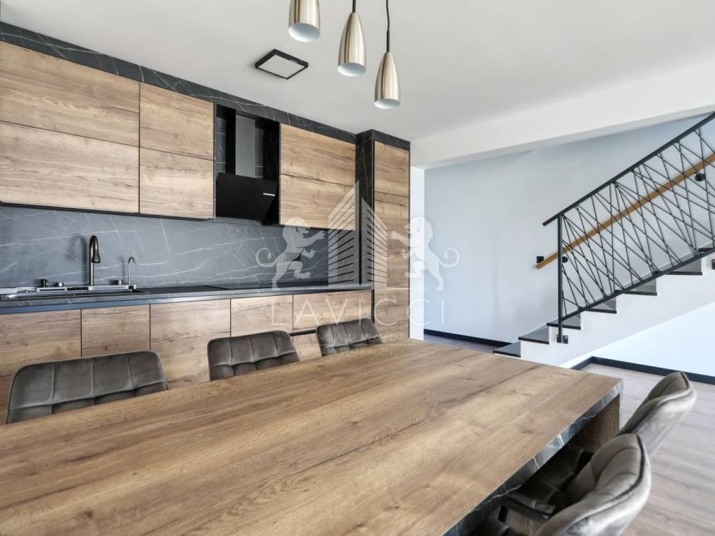 On the first floor there are three comfortable bedrooms and an additional bathroom with a toilet. The entire apartment is carefully decorated and equipped with quality furniture and all necessary appliances, so it is ready to move in immediately without additional investment.