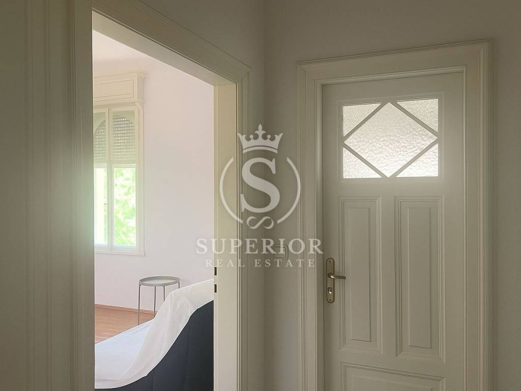 L’appartamento si trova al piano inferiore della villa, la cui facciata è stata ristrutturata due anni fa, restituendole il suo splendore originale e garantendone la qualità nel tempo.