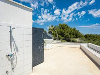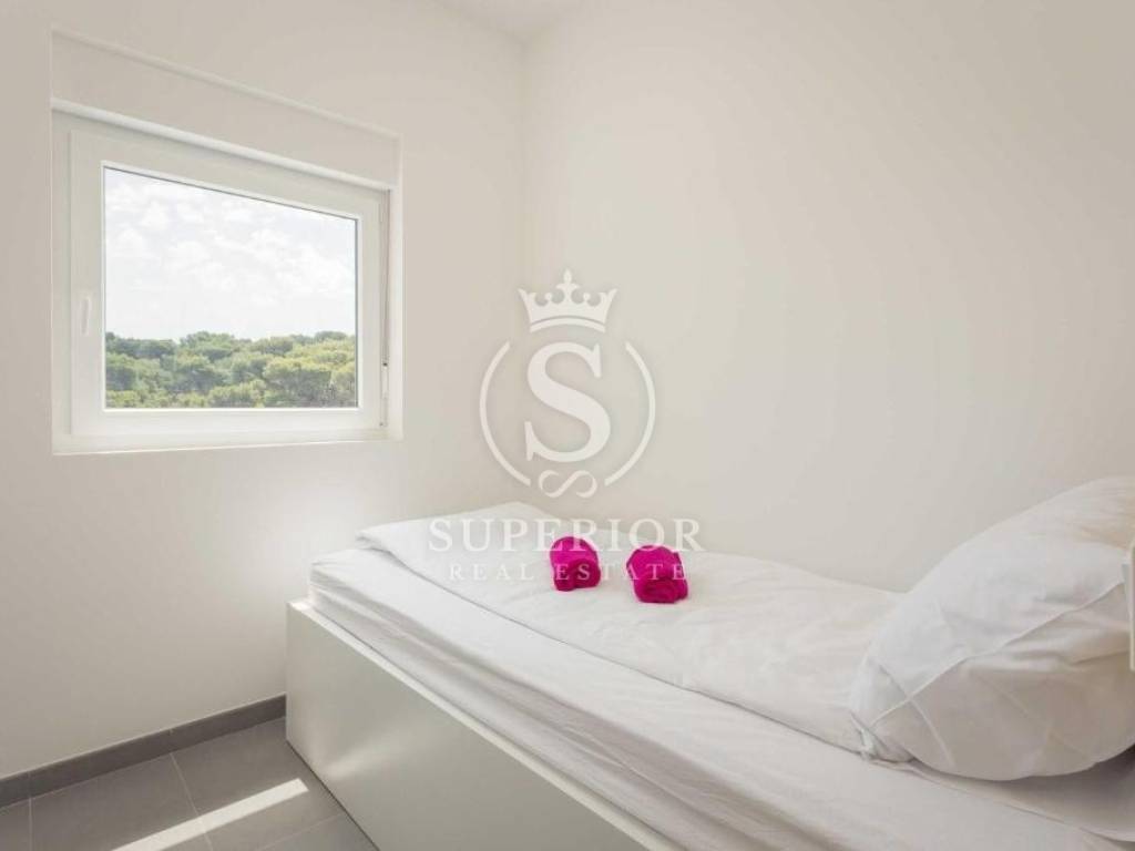 A Premantura, a pochi minuti a piedi dal mare, si trova un elegante attico che unisce design contemporaneo, posizione tranquilla e vicinanza alle spiagge. Luminoso e accogliente, questo appartamento trilocale offre una vista mozzafiato sul mare e una terrazza sul tetto ideale per rilassarsi e godere della brezza marina.