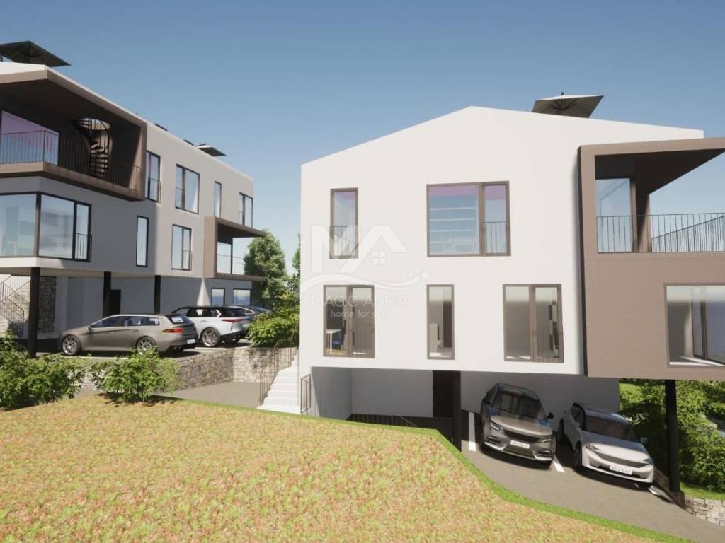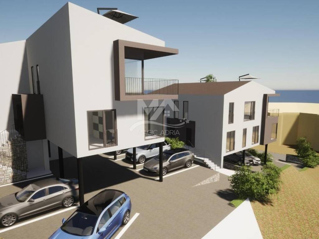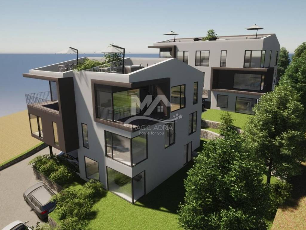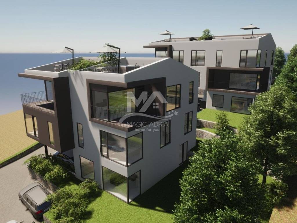 We are selling an apartment in a new building that is currently under construction on a location that is only 270 meters as the crow flies from the sea. The villa is designed with only three residential units and is located in a dead-end street with no traffic, which ensures a quiet and pleasant environment. The apartment consists of three floors. On the first floor there are three bedrooms and two bathrooms. On the second floor there is a large living area with a kitchen and dining area and a storage room. On the third floor there is a large roof terrace. The apartment will also have two parking spaces. The high quality of the building is complemented by aluminum joinery, security doors, heating and cooling with a heat pump. The buyer has the option of choosing the interior finishes at this stage of construction. The expected completion of the building is autumn 2025.