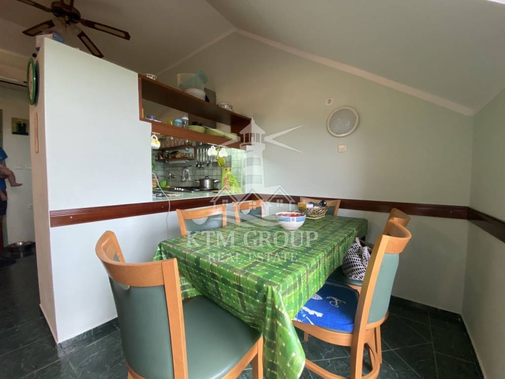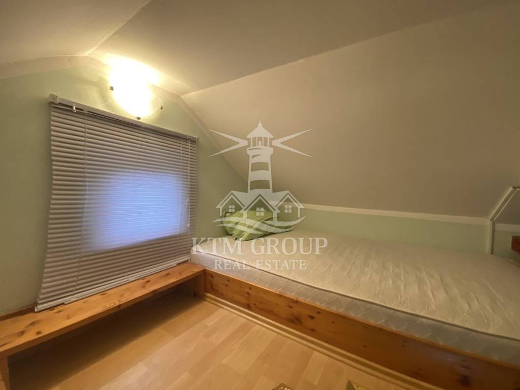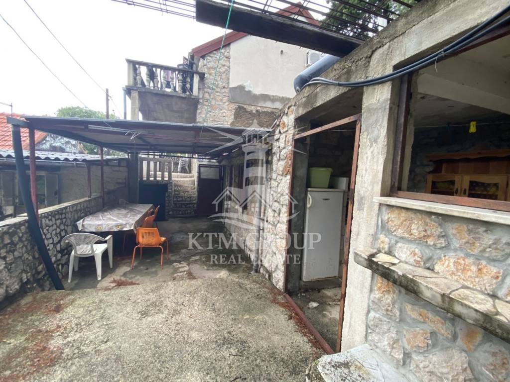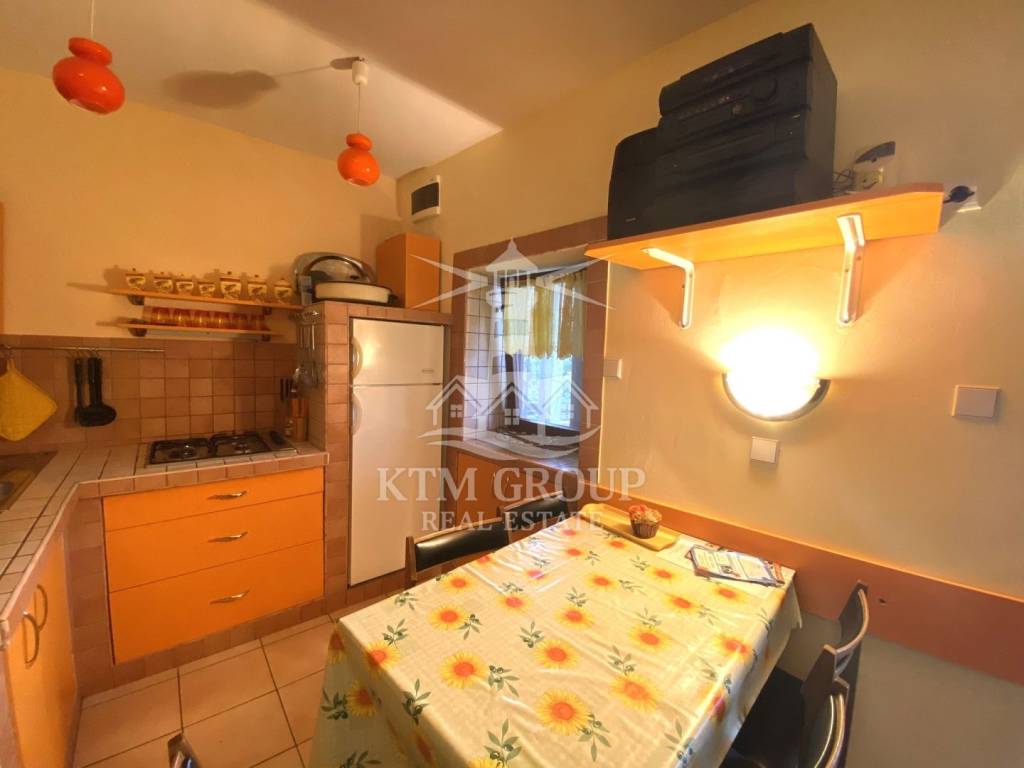 The house consists of three apartments and a summer kitchen. On the ground floor there are two one-bedroom apartments, each with a separate entrance and its own terrace. They consist of a kitchen with a dining room, a bedroom and a bathroom. One is fully furnished and ready to move in, while the other requires minor investment.