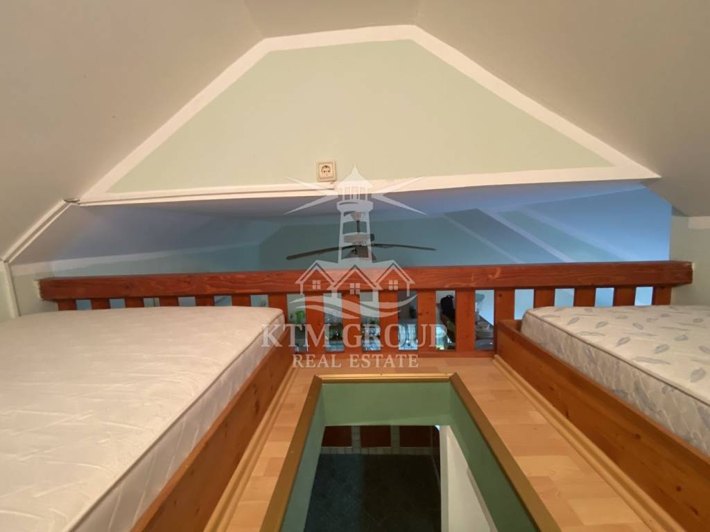 External side stairs lead to the first floor where there is a beautifully decorated third apartment. It consists of a kitchen with a dining room and a living room with a double bed, a bedroom located on the gallery and a bathroom. The dining room leads to a spacious balcony with a beautiful sea view.