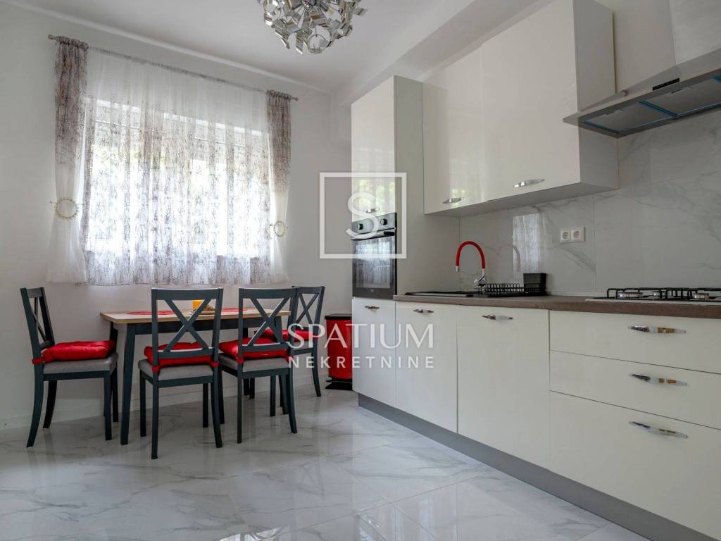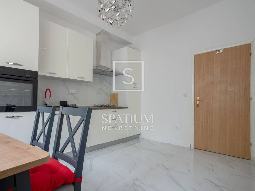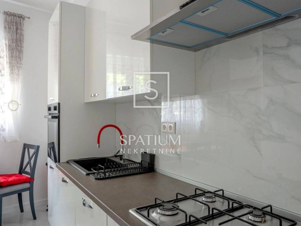BELVEDER, In vendita un appartamento completamente arredato e ristrutturato di 54 m² in un'ottima posizione a Fiume. Nel cuore di Belvedere, al piano terra di un edificio residenziale, questo appartamento è pronto per essere abitato rapidamente. L'appartamento funziona come unità indipendente, dando la sensazione di trovarsi in una piccola casa.