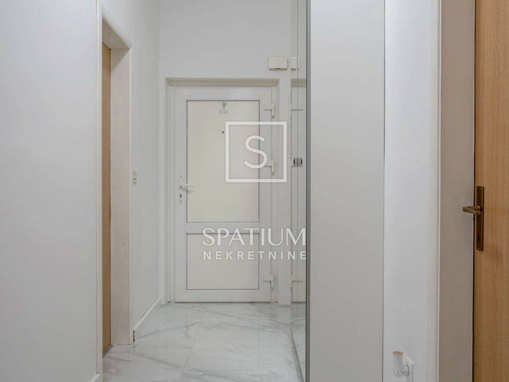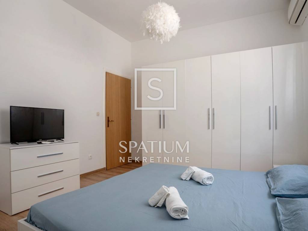 Si compone di due stanze più grandi, una delle quali è arredata come camera da letto con angolo studio e l'altra come soggiorno, una cucina separata con sala da pranzo, disimpegno, bagno e WC separato. Infissi in PVC di nuova installazione con tapparelle, facciata termica e aria condizionata. Ogni dettaglio dell'arredamento è stato scelto con cura per rendere il vostro soggiorno nell'appartamento il più piacevole possibile. Ottima microubicazione, vicino a scuole, università, asili, trasporti pubblici e tutti i servizi necessari.