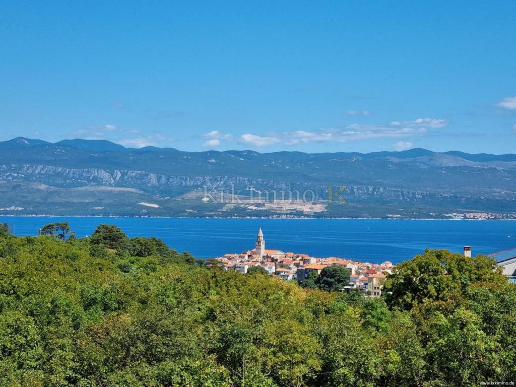 The ground floor is connected by an internal staircase to the first floor where there are 3 bedrooms, two of which boast private terraces and bathrooms. The house itself is located on a hillside with a beautiful panoramic view of the sea and the town of Vrbnik. Given that the house is located on a plot of 850 m2, future owners have various options for landscaping.