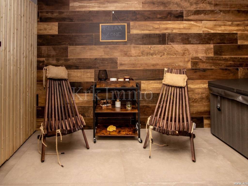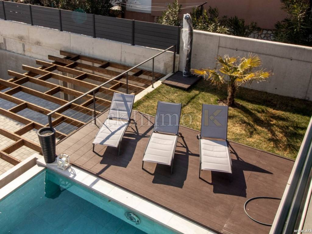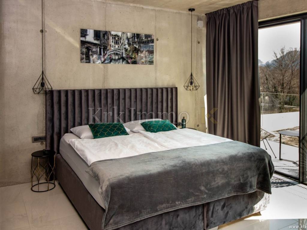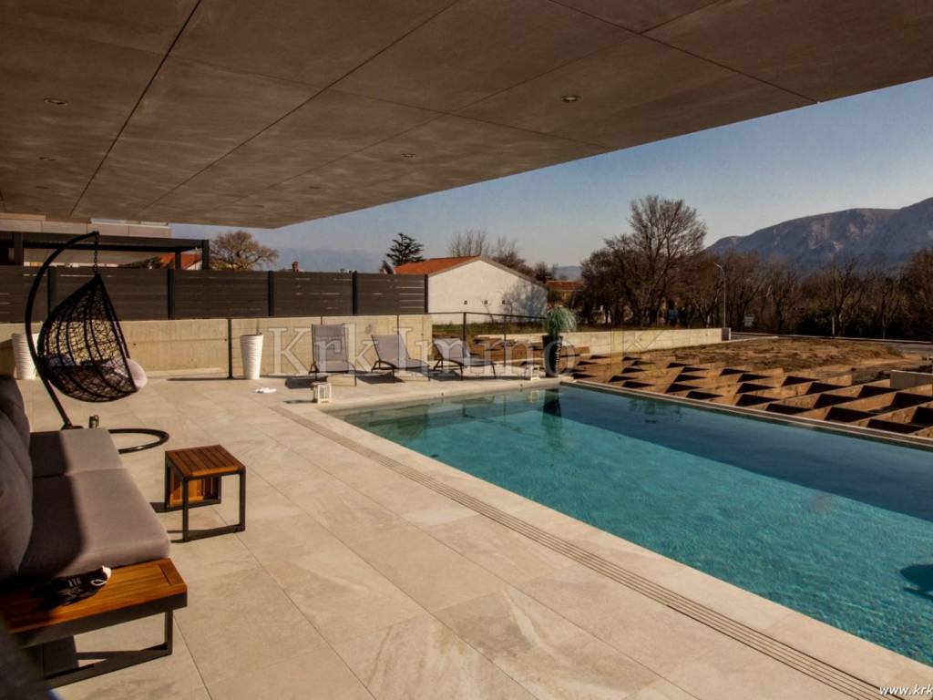 For sale is a new modern luxury villa in a beautiful, quiet location near the center of Baška and beautiful beaches. The living area of the villa is 270 m2, and the villa has a basement, ground floor and first floor. In the basement there is a wellness area with a Finnish sauna and a jacuzzi, a bathroom, an engine room for the pool, a playroom and a large space that can be adapted to buyers' wishes.