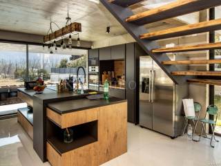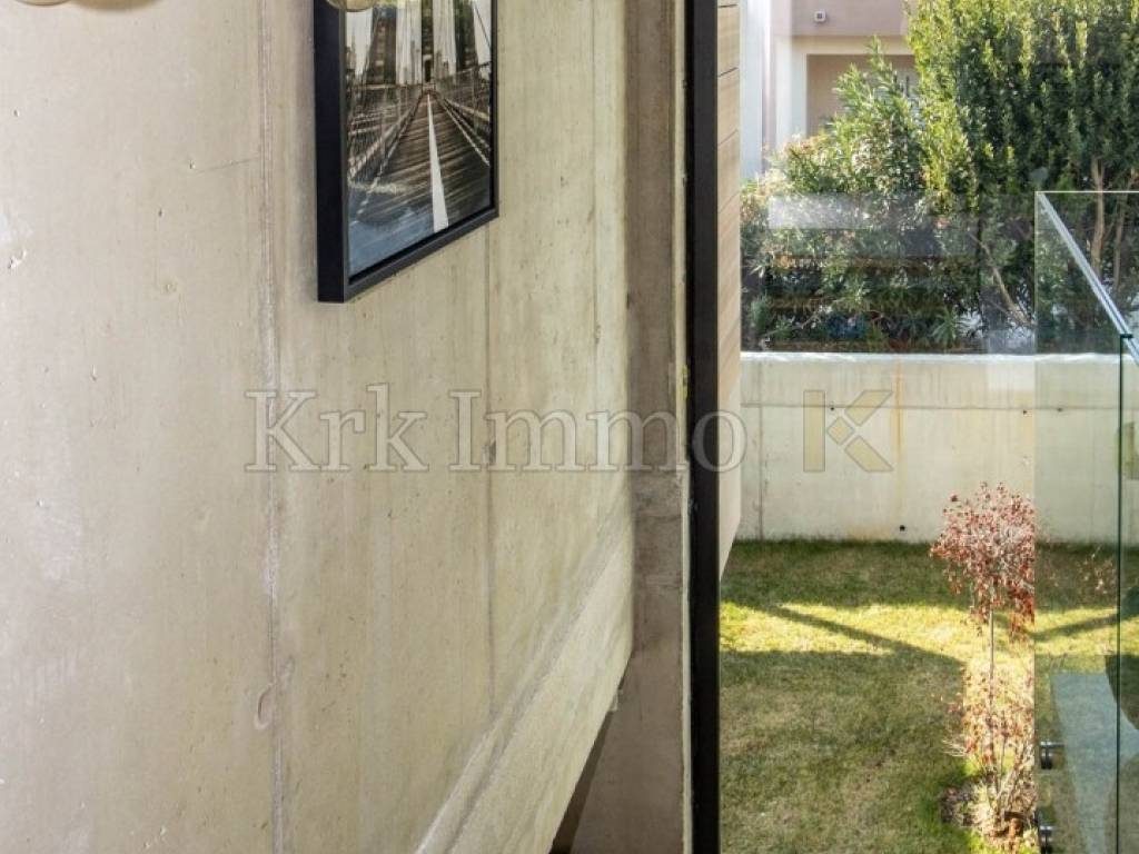 The ground floor has a toilet, a kitchen, a living room and a dining room that has access to the terrace in front of the pool, and due to modern glass walls, the ground floor is full of natural light. Internal stairs lead to the first floor, where there are four bedrooms with attached bathrooms, and two rooms have access to the terrace. In the landscaped garden there are 4 parking spaces, swimming pool, sun deck and summer kitchen as well as an automatic irrigation.