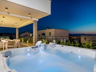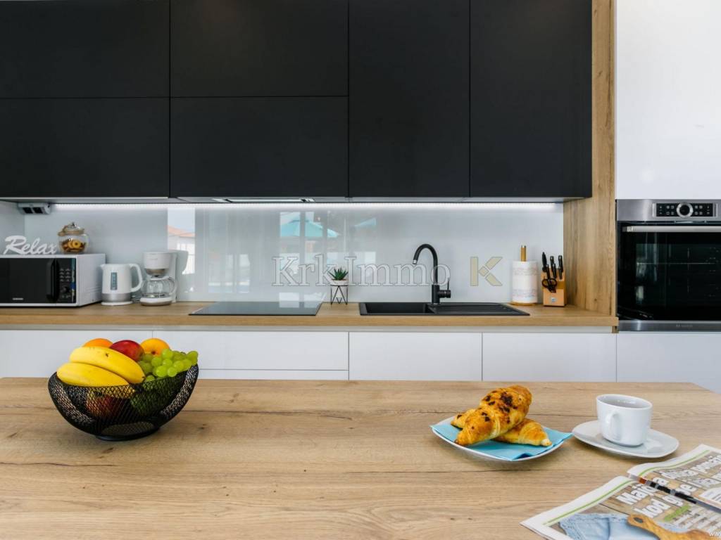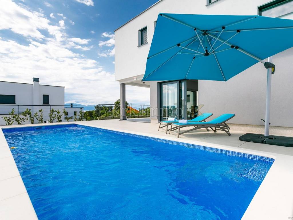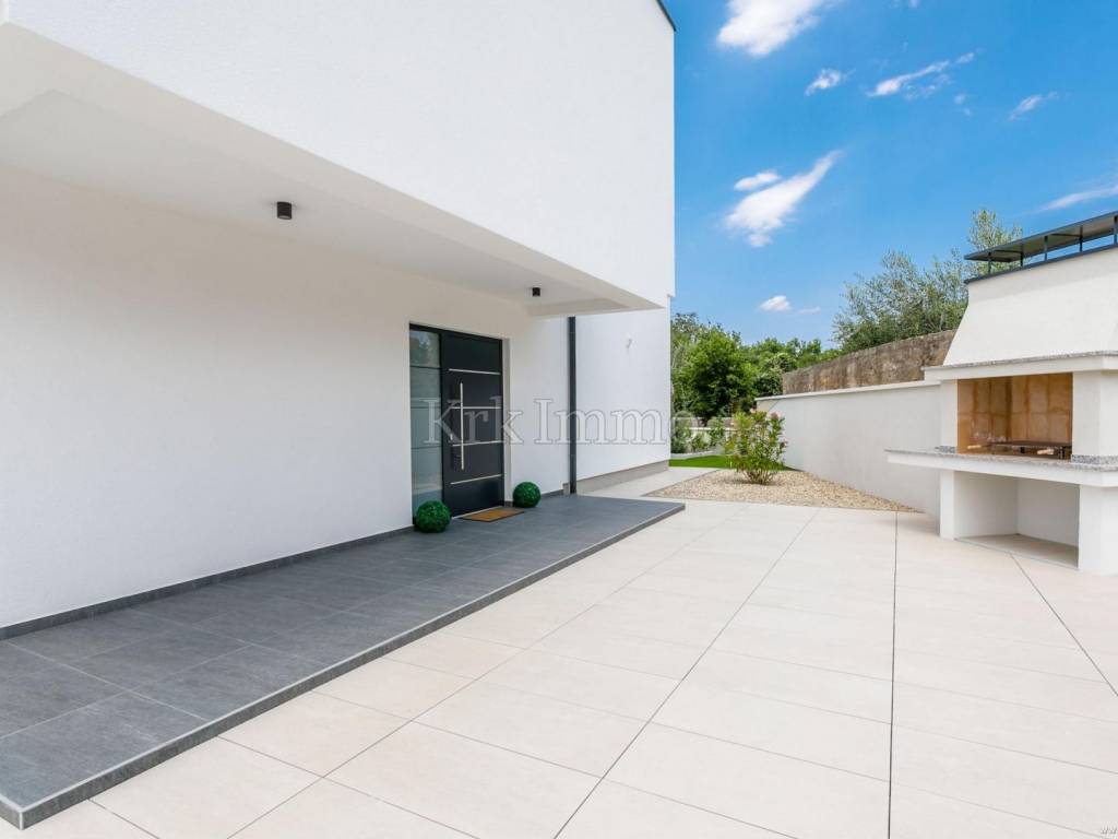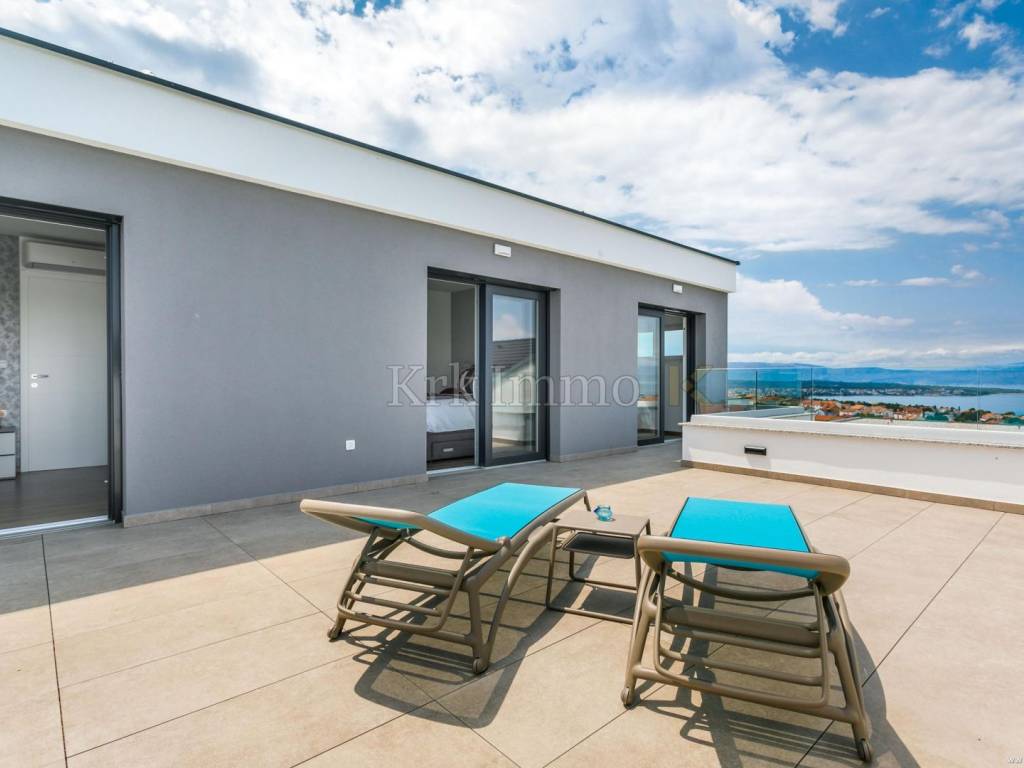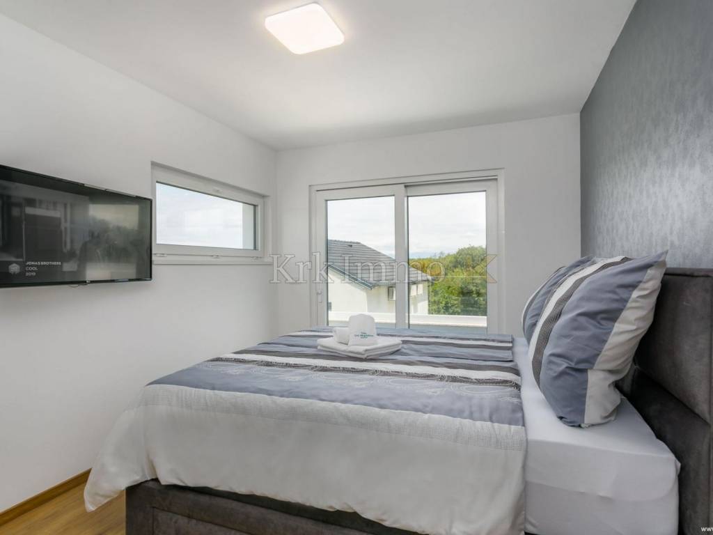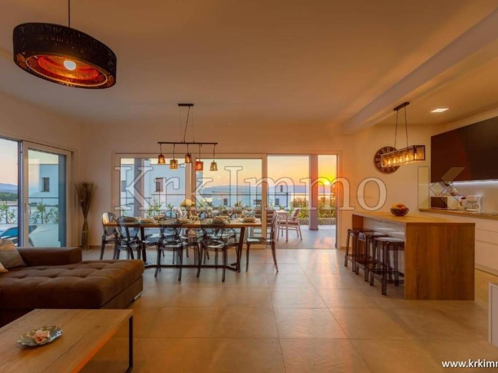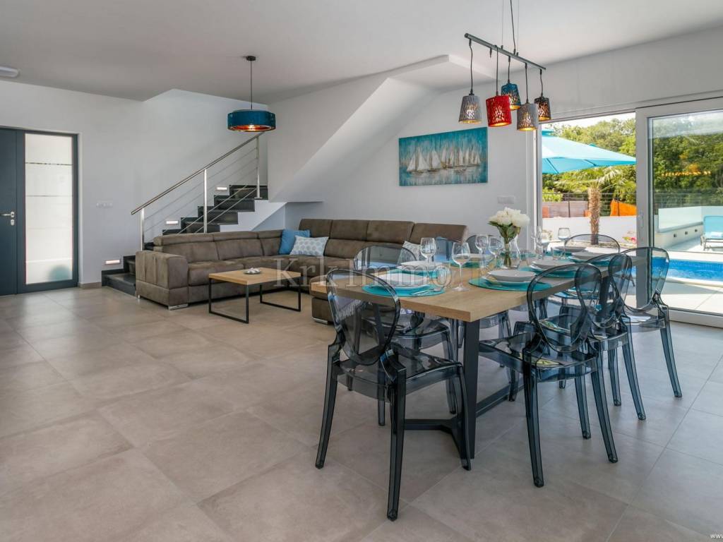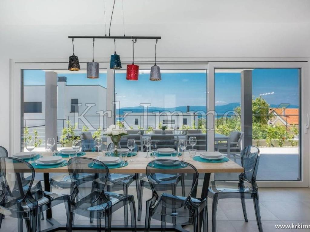 Exclusive offer! Luxury detached villa with pool, jacuzzi and sea view. From our real estate offer, we single out this beautiful detached house with a top level of equipment, which boasts a panoramic view of the sea and a beautiful location. The villa is in a quiet location in Malinska, surrounded by modern newly built villas and greenery and offers a real island idyll. The villa extends over the ground floor and first floor, and has a total living area of 180m2. On the ground floor there is a toilet, a storage room, one bedroom with its own bathroom and access to the garden, an equipped kitchen, a spacious living room and dining room with access to a covered terrace and a beautifully landscaped garden with a swimming pool and sun deck. The internal stairs lead to the first floor, where there are three bedrooms, each of which has its own bathroom and access to an uncovered balcony with a jacuzzi and a beautiful panoramic view of the sea. The 600 m2 yard is beautifully landscaped with Mediterranean plants, and has a swimming pool, sunbathing area, barbecue, outdoor shower and table tennis. Top quality construction and equipment, such as underfloor heating, a heat pump for the pool, PVC carpentry, quality sanitary ware and floor coverings, are just some of the characteristics of this beautiful villa. The property is for sale fully equipped and furnished, and it also includes two covered parking spaces. Due to its quiet location, quality equipment and beautiful panoramic view of the sea, this new building is an excellent investment opportunity. ** With KRK IMMO SERVICE AND MANAGEMENT "Click or call we do it all" - buy - rent - don't worry! You are buying a house and considering renting and want someone else to take care of it? Excellent, you are at the right place, because KRKIMMO SERVICE AND MANAGEMENT offers you a complete service after your purchase. If you decide to rent real estate, we will be happy to help and advise you so that you can reach this segment optimally without stress. We take care of everything to do with the rent and maintenance of your house, because we are the only ones who offer you a complete service when buying real estate. Brokerage commission when concluding a legal transaction for the buyer is 3% + VAT. Krk Immo d.o.o. and lawyers guarantee proper documentation and secure transfer of ownership. For all other information, contact us and make an appointment with our lawyer and advisor. Krk Immo d.o.o. Tel: +385 98 977 9705 E-mail: info@krkimmo.com www.krkimmo.com