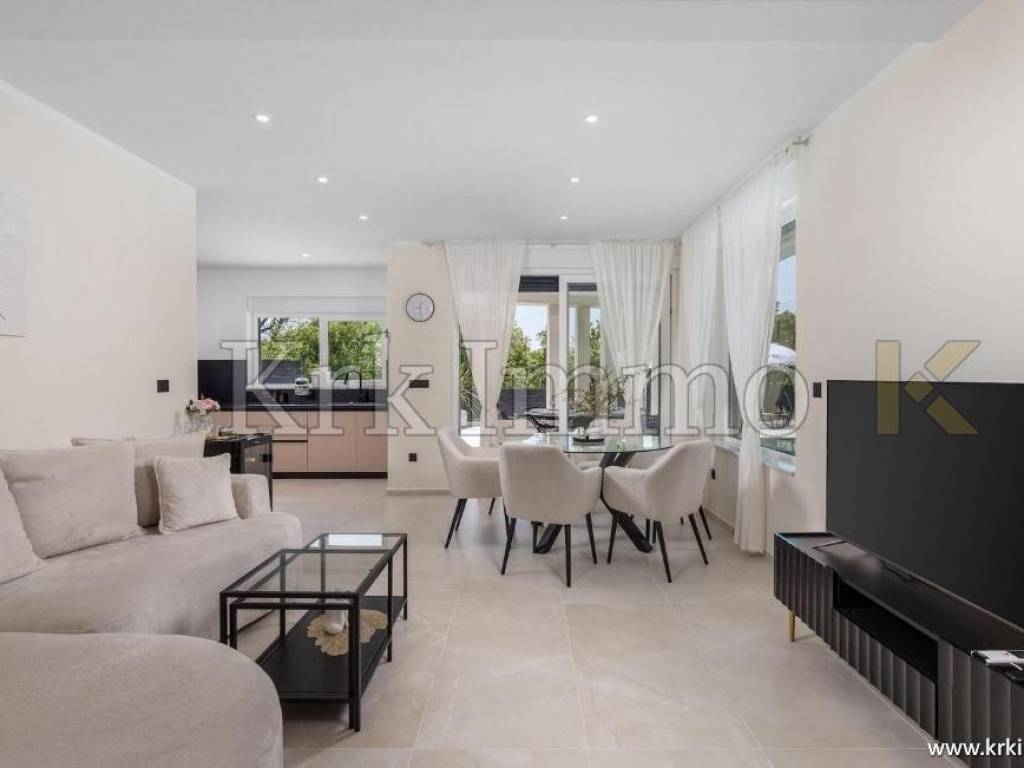 The house is for sale furnished, so you can immediately enjoy its benefits. The house is situated in an extremely quiet location near Vrbnik, on the edge of the construction zone. All necessary facilities for a comfortable life are nearby. This remarkable house with a modern design is perfect for those who are looking for a luxurious living space in a peaceful environment that is also close to all the facilities that life on the island of Krk offers.