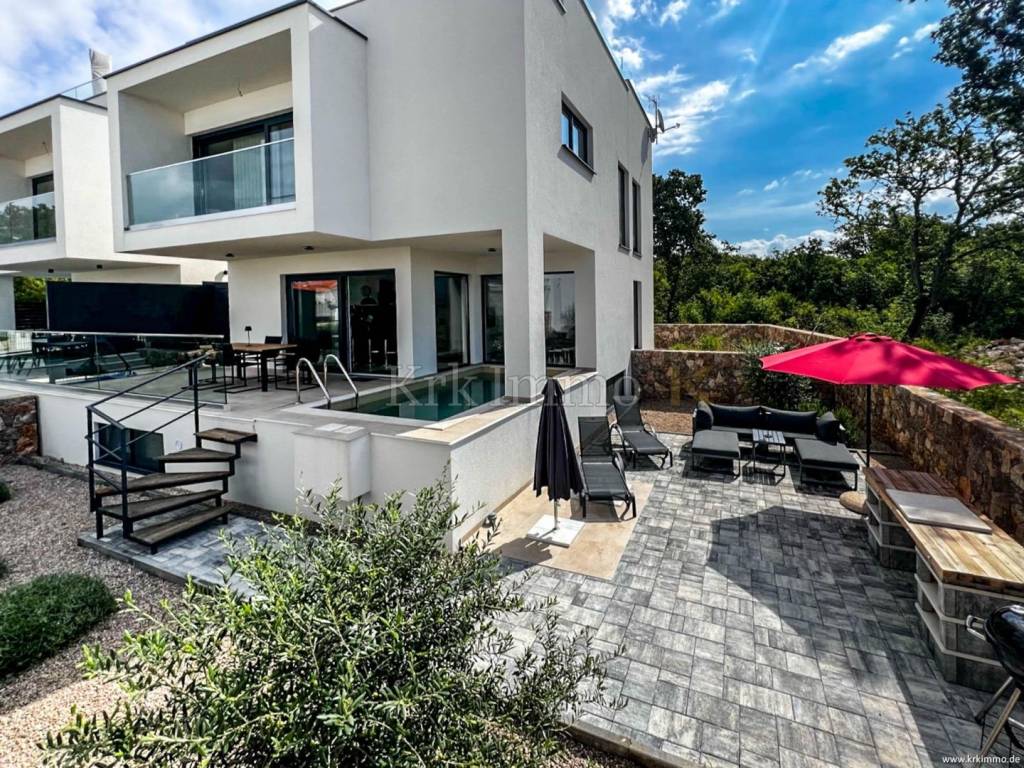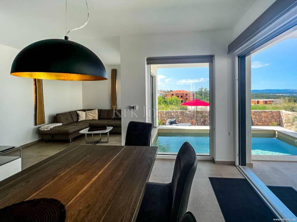 For sale is an exclusive two-story apartment in a quiet location in Njivice, just 500 meters from the sea, about a 7-minute walk to the beach and close to the center. This elegant apartment extends over approximately 125 m2 and offers a perfect combination of comfort, style and functionality.