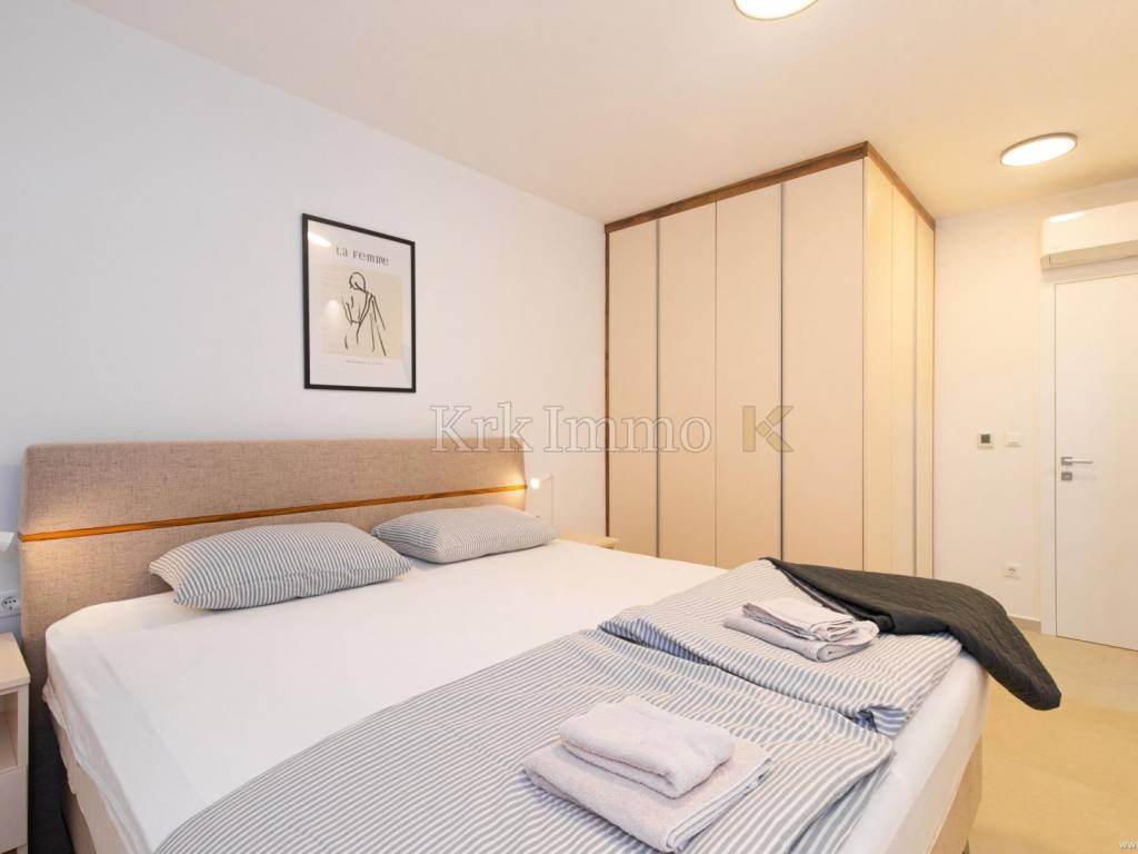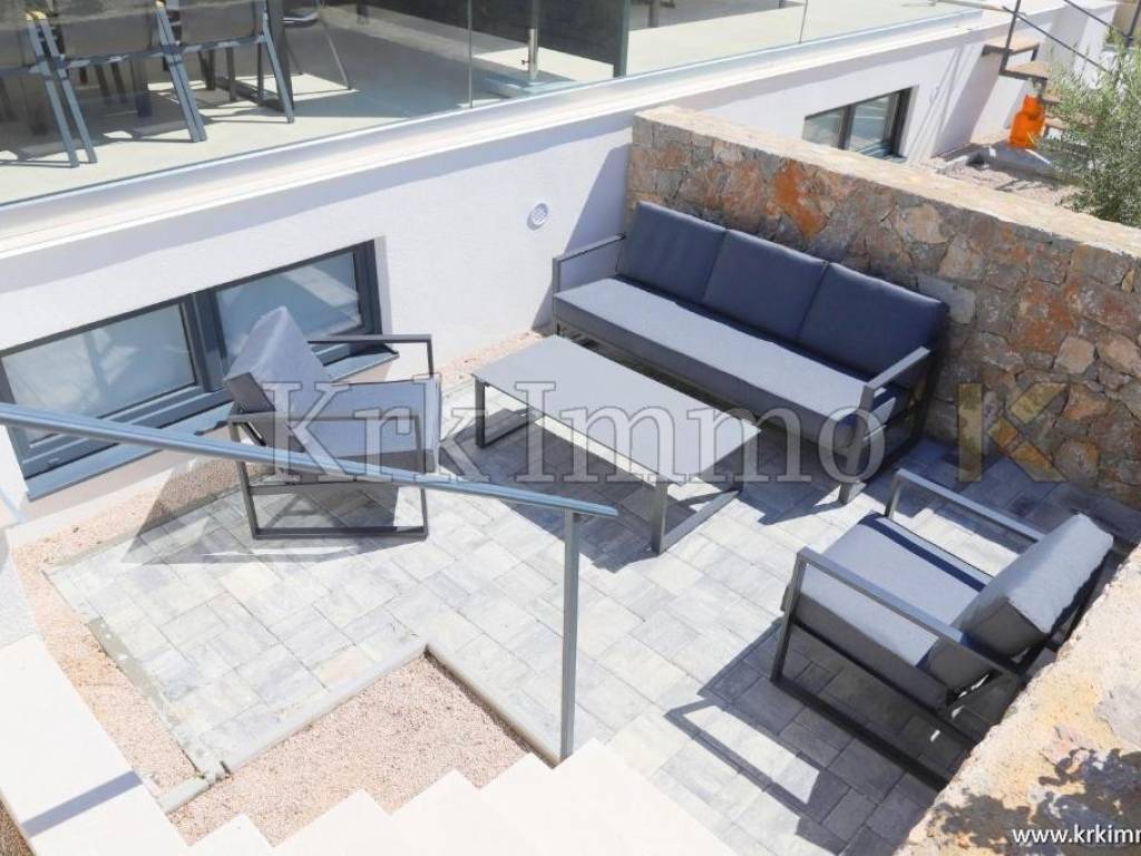 Located only 500 meters from the sea and near the center of Njivice, this modern apartment offers everything you need for a comfortable and luxurious life by the coast. This two-story apartment covers an area of 77 m2 and consists of a basement and a ground floor.