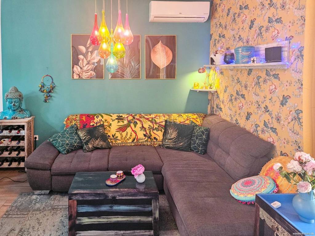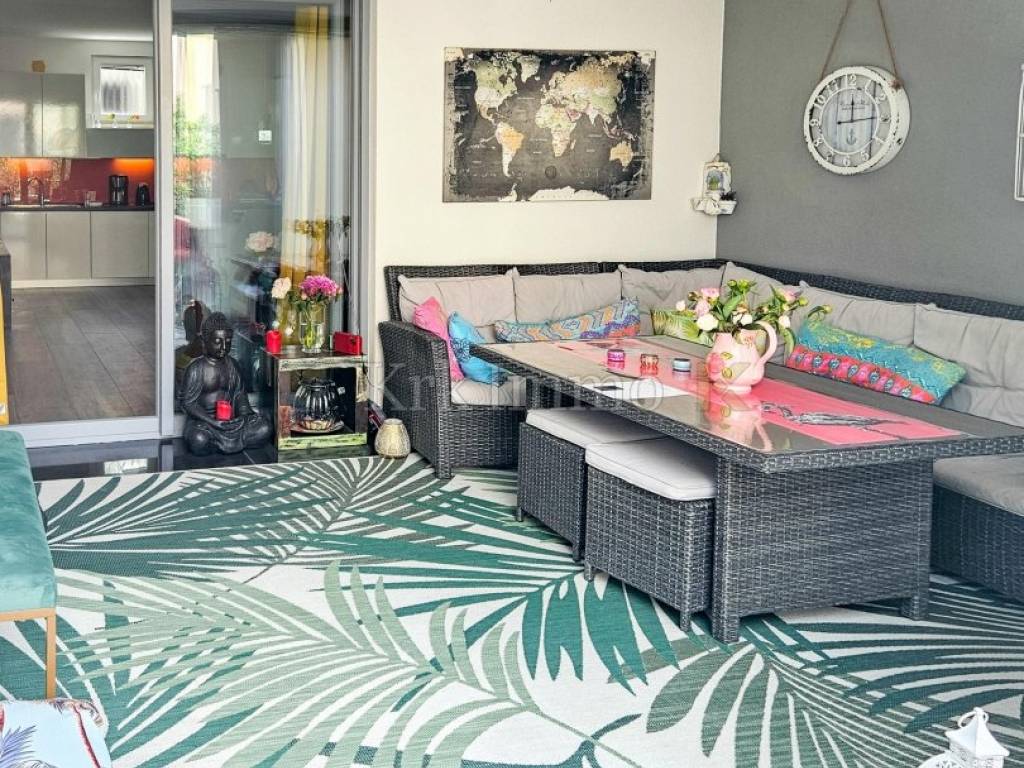 The apartment is thoughtfully laid out and offers a comfortable living environment. An entrance area leads into a bright and inviting open-plan living space that seamlessly connects the living room, dining area and kitchen. From the living room, there is direct access to the private garden, creating a pleasant connection between indoor and outdoor living and adding a strong sense of comfort and privacy. The bedroom is quiet and well separated from the living area, while the bathroom is fully equipped and carefully maintained.