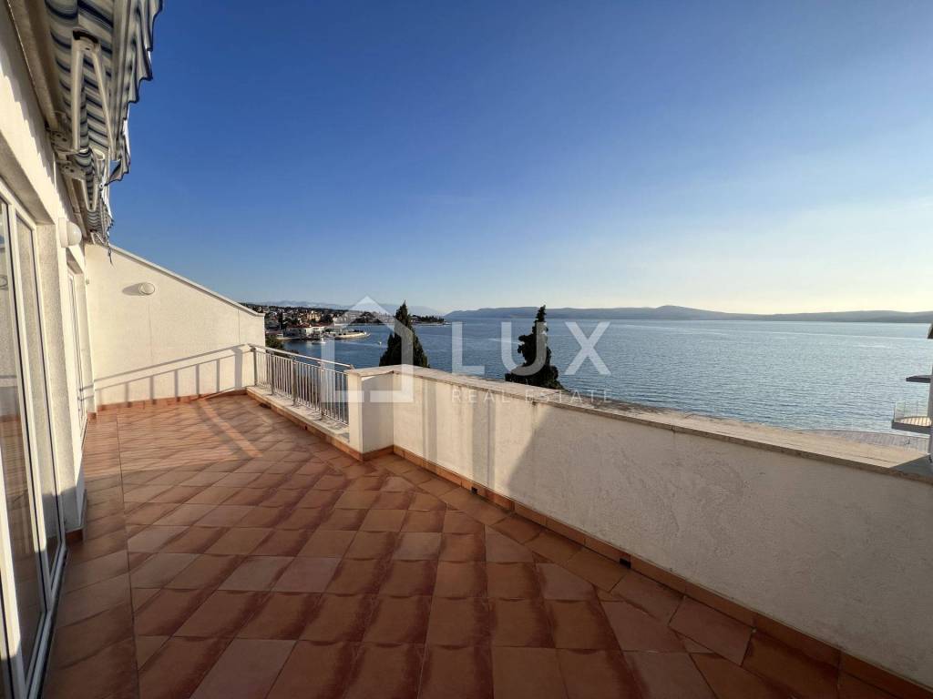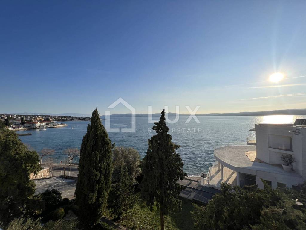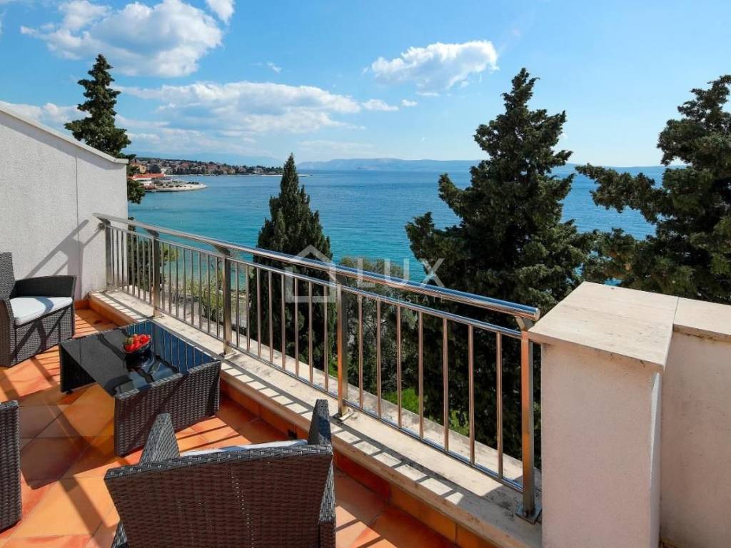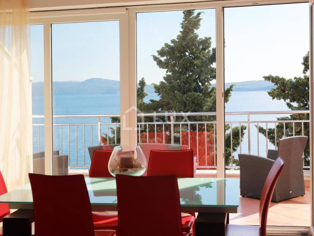 Luminoso appartamento con molte pareti di vetro, prima fila sul mare, a 10 metri dal mare, dalla spiaggia e dal lungomare che collega Selce con Crikvenica.