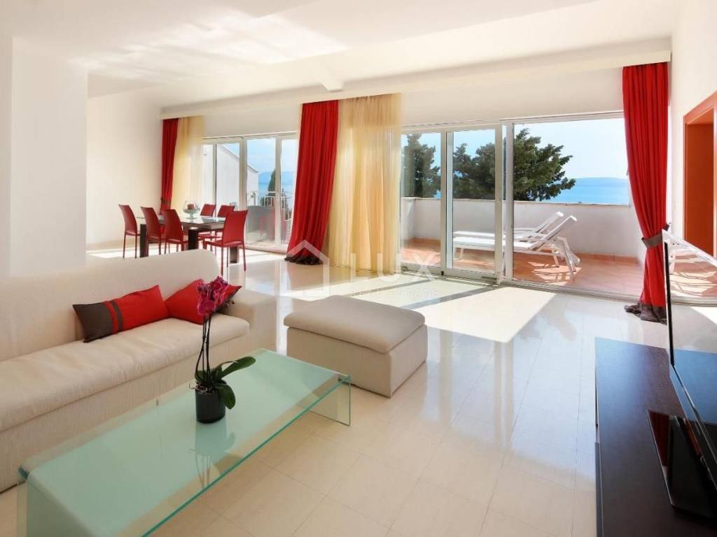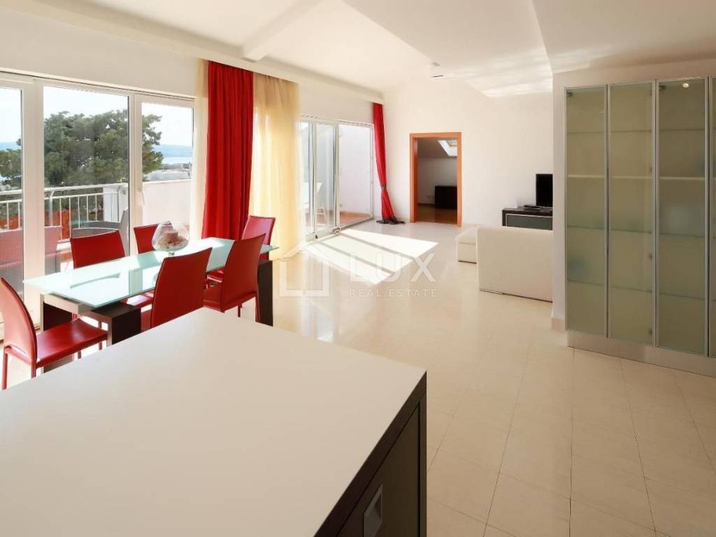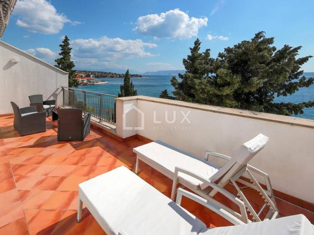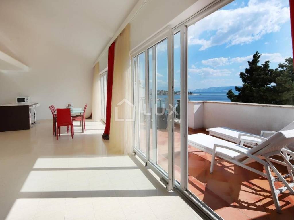Luminoso appartamento con molte pareti di vetro, prima fila sul mare, a 10 metri dal mare, dalla spiaggia e dal lungomare che collega Selce con Crikvenica.