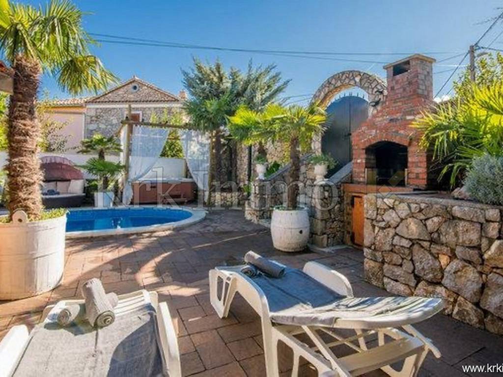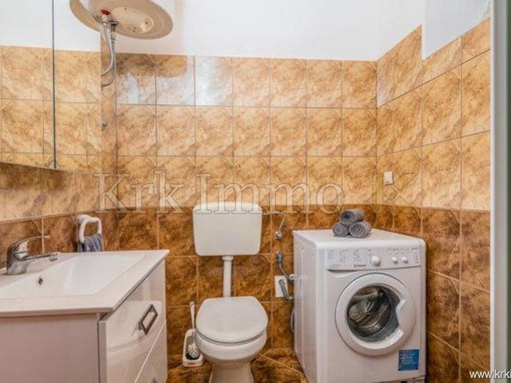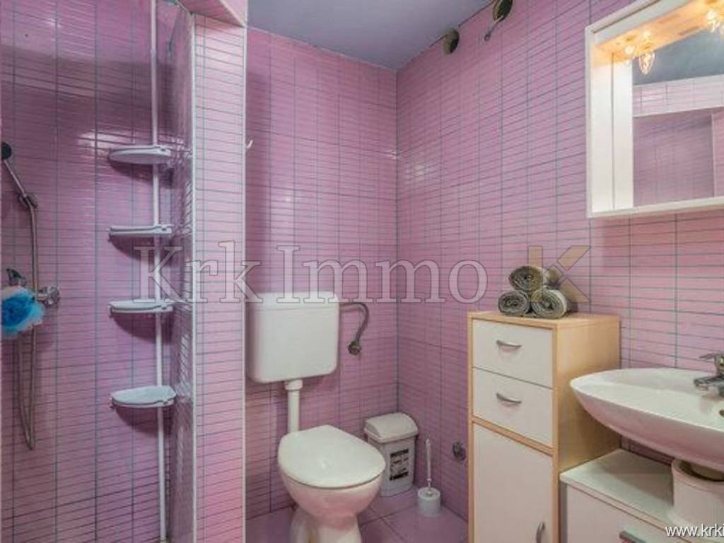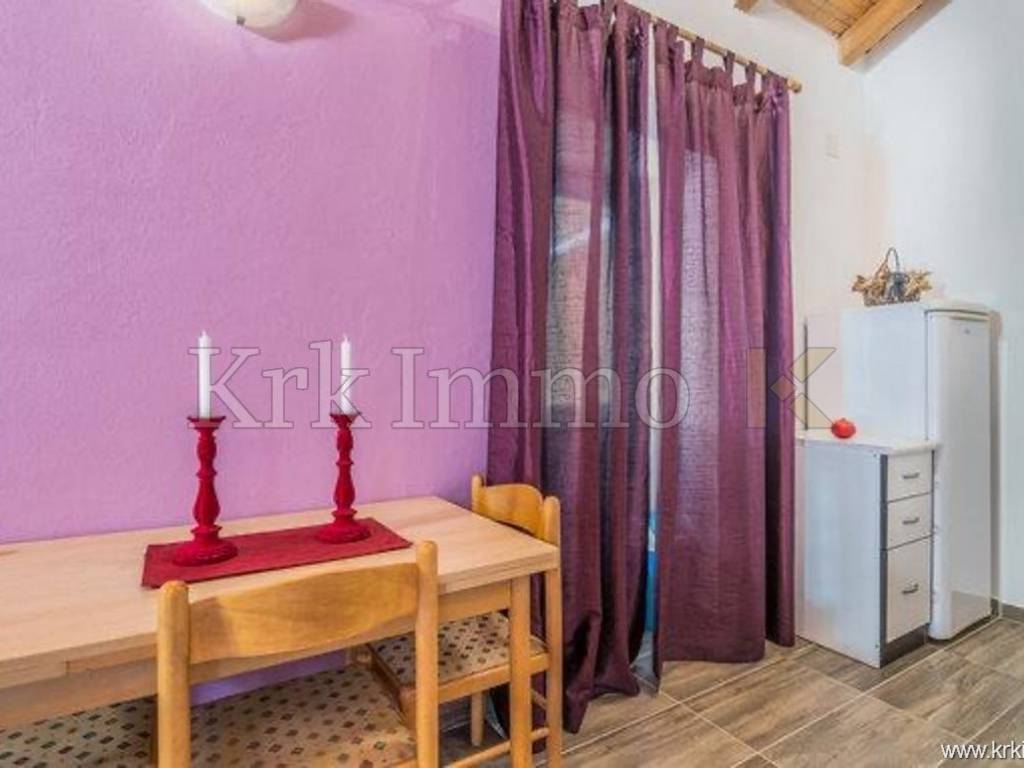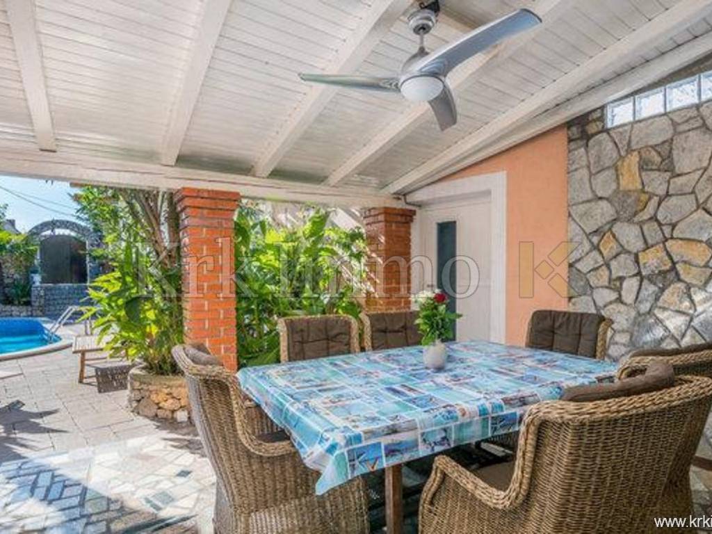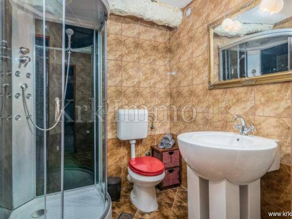 For sale is a furnished apartment house in a quiet location on the island of Krk. This house has two floors and a total area of ​​125 m2. On the ground floor is the first apartment, which consists of two bedrooms, a bathroom, a kitchen, a dining room and a living room with access to a covered terrace and a landscaped garden.