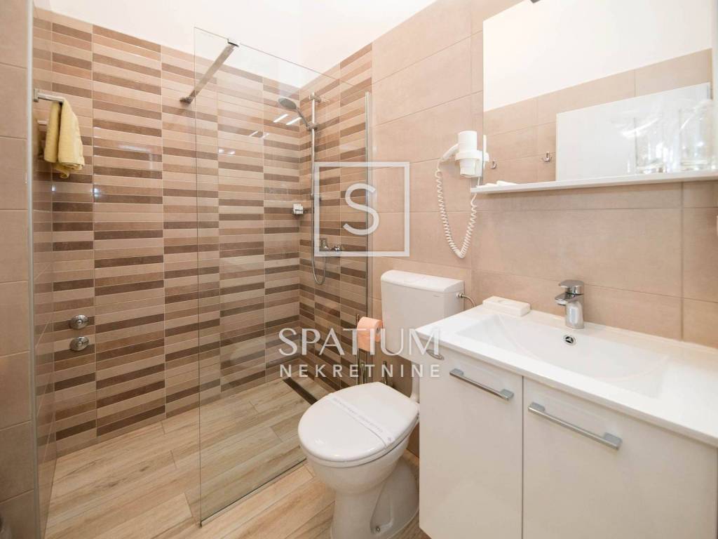 SELCE, abbiamo ricevuto un'offerta per un hotel nel centro della città, situato in una posizione prestigiosa a soli 45 metri dal mare. La struttura si estende su 1.438 m² di giardino e 1.800 m² di spazio interno e, sebbene attualmente classificata con tre stelle, le sue attrezzature e i suoi contenuti soddisfano già tutti i requisiti per l'aggiornamento a quattro stelle. L'hotel dispone complessivamente di 75 posti letto, distribuiti in 24 eleganti camere standard, un appartamento di lusso e due spaziose camere familiari. Sono inoltre disponibili 15 posti auto esterni e due garage, garantendo logistica e privacy. La parte centrale è costituita da un ampio ristorante con una capienza di 350 posti a sedere, 150 all'interno e 200 sull'ampia terrazza, ideale per organizzare vari eventi. A disposizione degli ospiti una piscina riscaldata con una profondità massima di 180 cm e un'ampia terrazza solarium, mentre l'esclusivo cocktail bar situato nella torre offre una vista panoramica unica. Un vantaggio particolare dell'hotel è l'appartamento per il personale situato nella mansarda, composto da quattro camere da letto, due bagni, una piccola terrazza e un balcone, che offre alloggio ai dipendenti. La ricca storia dell'edificio gli conferisce ulteriore valore. Costruito nel 1930, l'hotel è stato ristrutturato nel 2002 e completamente ristrutturato nel 2018, conservando il suo autentico aspetto mediterraneo, ma aggiungendo tutti i moderni standard tecnici ed energetici. La struttura rappresenta un'opportunità ideale per gli investitori e per il turismo sull'Adriatico. - L'infrastruttura tecnica dell'hotel comprende una reception, una lavanderia, due locali caldaie (una con due forni, l'altra con tre grandi cisterne d'acqua), due magazzini, una spaziosa cucina con due camere e un'area per la preparazione della carne, una sala macchine e un serbatoio di petrolio con una capacità di 7 tonnellate. -Ogni camera dell'hotel è dotata di aria condizionata e l'intera struttura è dotata di riscaldamento centralizzato e di pannelli solari posizionati sul tetto dell'hotel e del garage, il che consente un'elevata efficienza energetica e un notevole risparmio energetico.