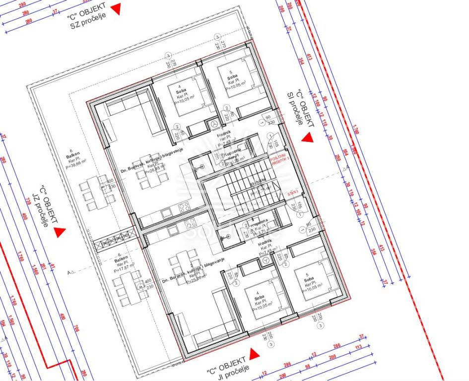 Ogni edificio (A, B e C) ha in totale 6 appartamenti. Sono disponibili anche appartamenti al piano terra con giardino e appartamenti al primo piano con ampie terrazze. L'intera offerta e le brochure sono disponibili su richiesta.