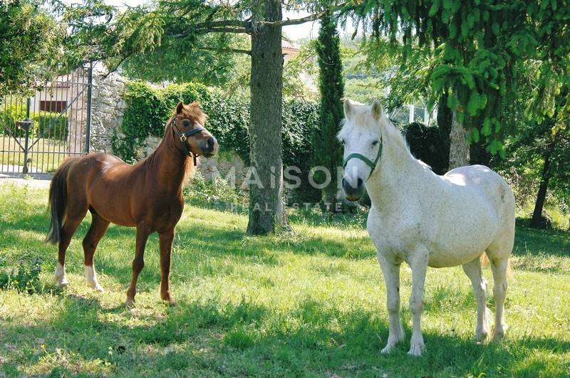La tenuta si estende su oltre 18.000 m² ed è completamente circondata da antiche mura in pietra. Al suo interno si erge il palazzo barocco quadrangolare Franković–Lazzarini con cortile interno e torre dell’orologio, immerso in un giardino curato, pavimentazioni originali in pietra, un laghetto ornamentale e torri semicircolari ben conservate agli angoli. La proprietà include anche un ristorante attrezzato con circa 100 posti a sedere, una tradizionale konoba istriana e un palco estivo ideale per eventi culturali.